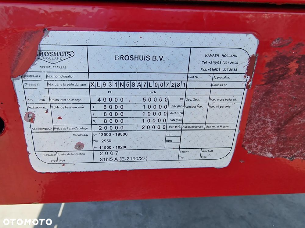 BROSHUIS rozciągana naczepa niskopodwoziowa 2007 rok; ABS; pneumatyczne zawieszenie; 3 osie SAF; hamulce bębnowe; ostatnia oś skrętna; długość 13,30 m ( 8,70 m + 4,60 m) + rozciągana 6,30 m; burty aluminiowe; pierwsza oś podnoszona;