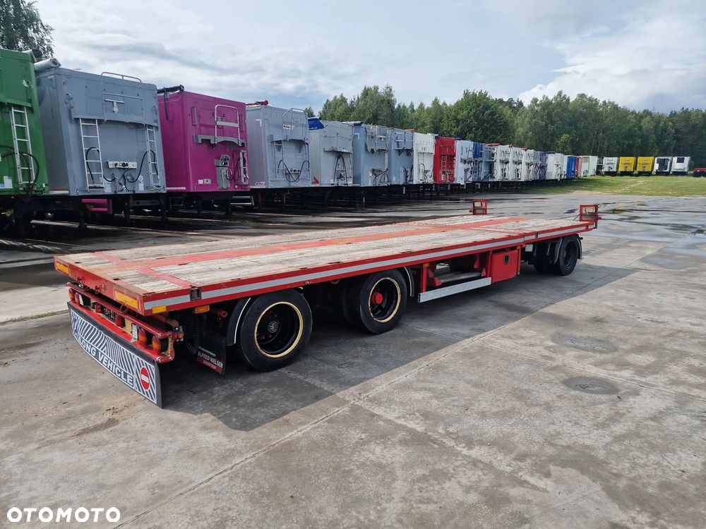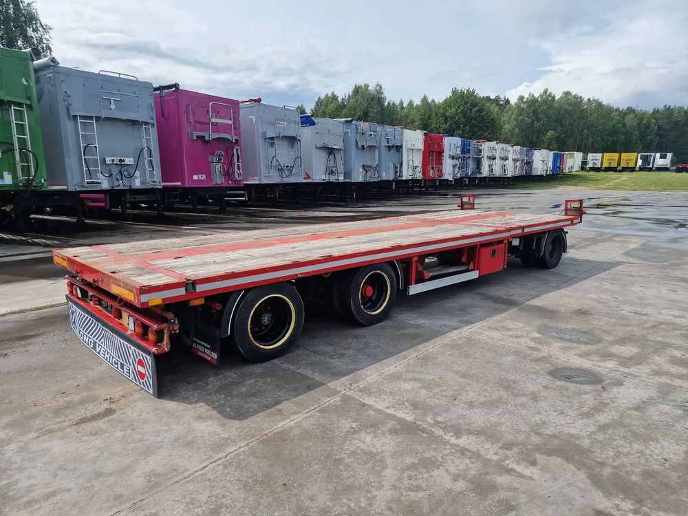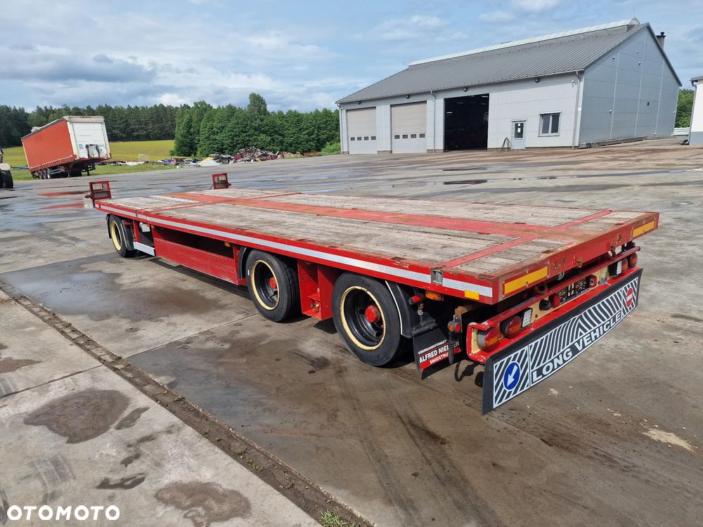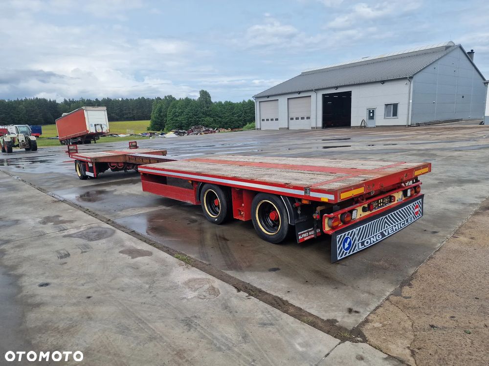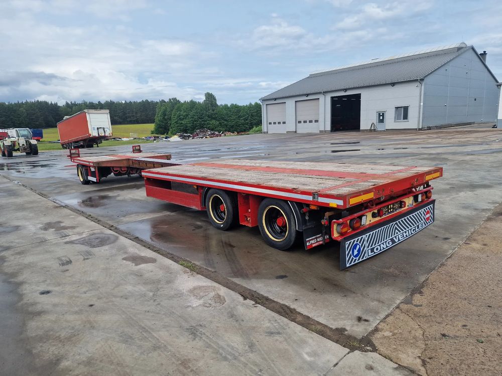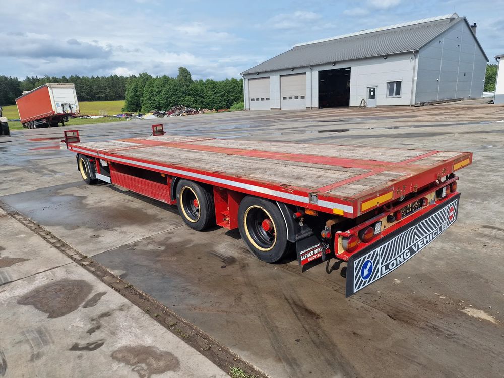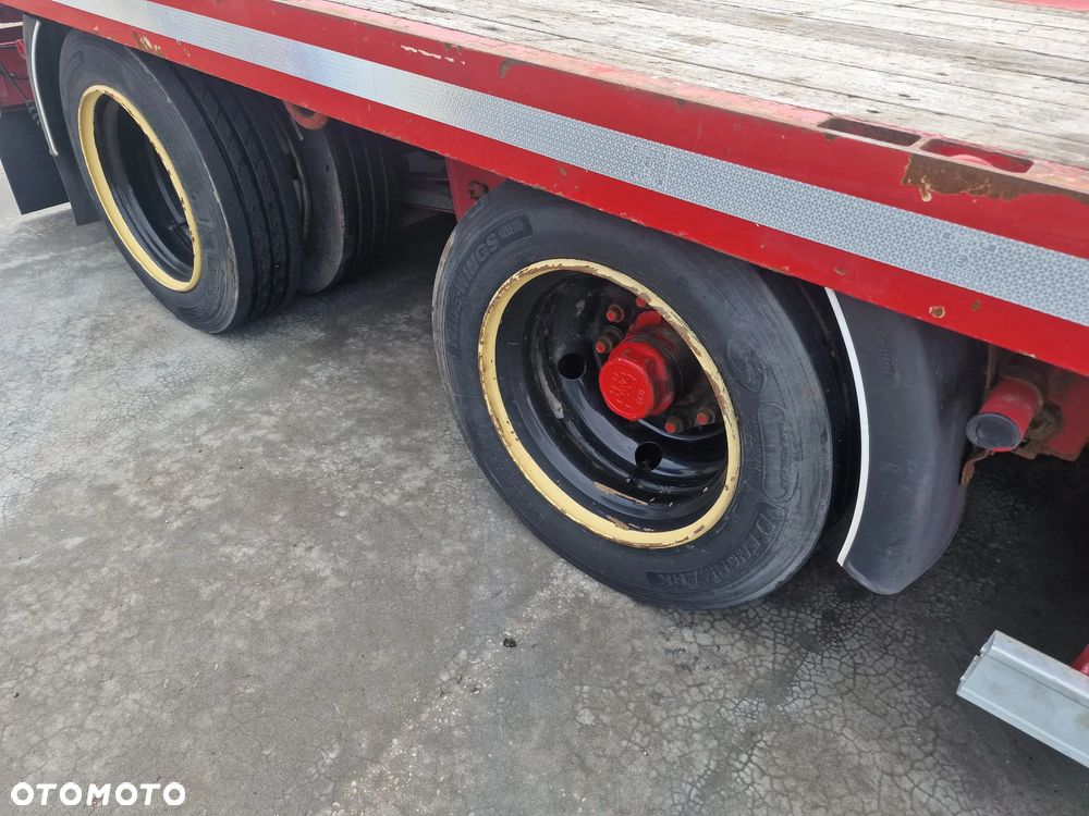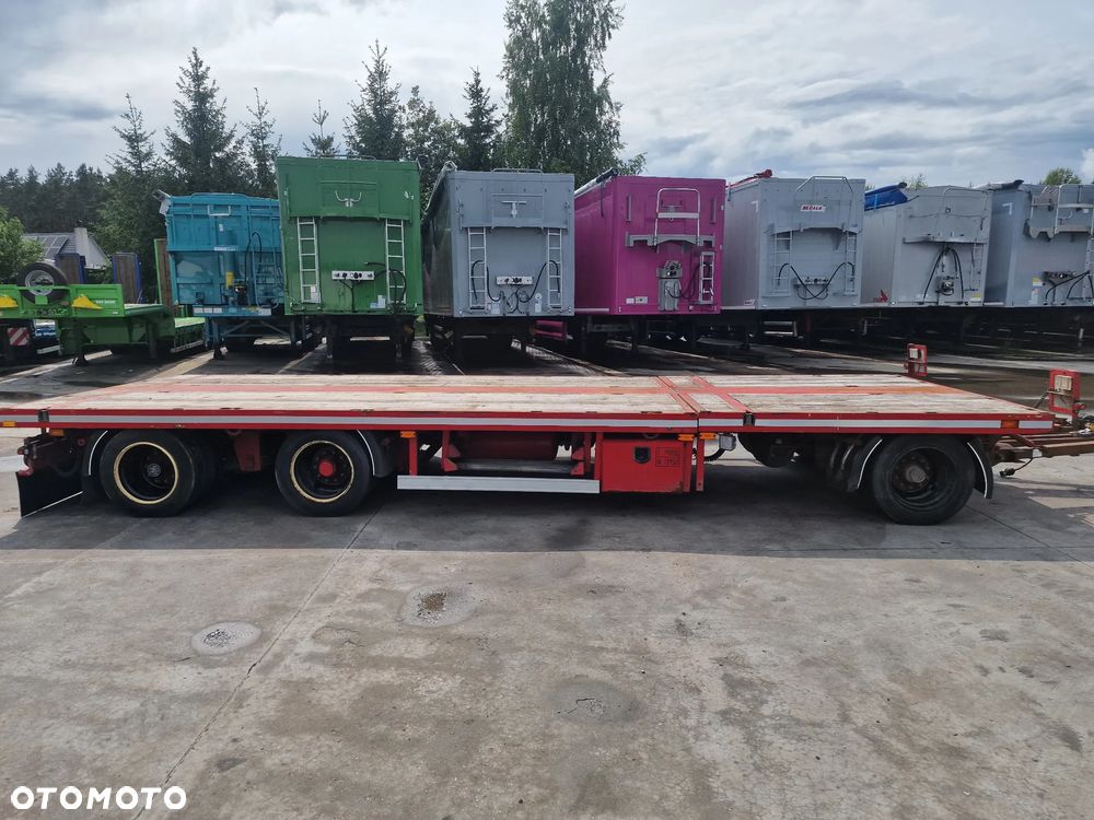 BROSHUIS przyczepa platforma niskopodwoziowa 2005 rok; ABS; pneumatyczne zawieszenie; 3 osie BPW; hamulce bębnowe; ostatnia oś podnoszona; długość 7,50 m + rozciągana 3,50 m; szerokość 2, 48 m (możliwość poszerzenia); wysokość: 0,80 m; DMC: 19800 kg; masa własna: 5850 kg; ładowność: 13950 kg;