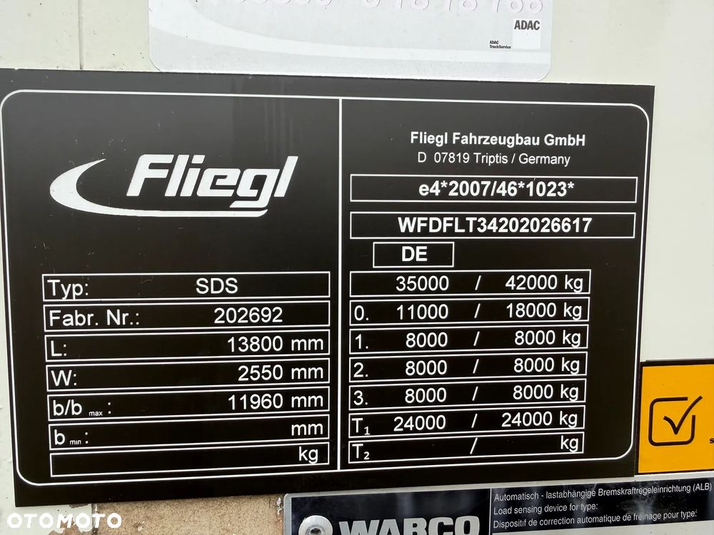 FLIEGL Ruchoma podłoga 92m3 2020 rok; 3 osie SAF; hamulce tarczowe; rozmiar opon: 385/55R22,5; podłoga Cargo Floor o grubości 8 mm w stanie bardzo dobrym; pilot bezprzewodowy; masa własna: 7740 kg;
