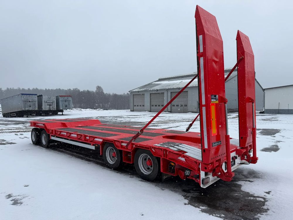 GOLDHOFER przyczepa niskopodwoziowa 2010 rok; ABS; pneumatyczne zawieszenie; 4 osie BPW; hamulce bębnowe; najazdy hydrauliczne; długość powierzchni ładunkowej: 9,25 m; szerokość: 2,54 m (poszerzana do 3,00 m); DMC: 24000 kg; masa własna: 8960 kg; przyczepa po odnowie lakierniczej;