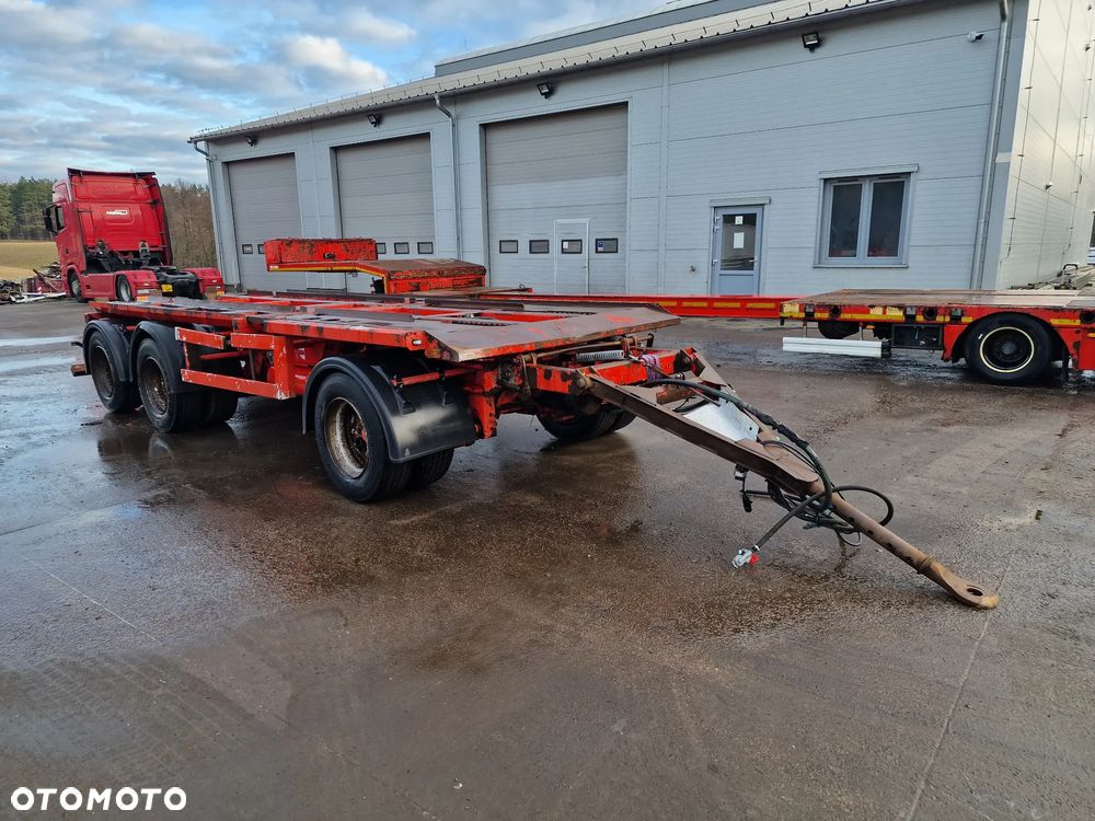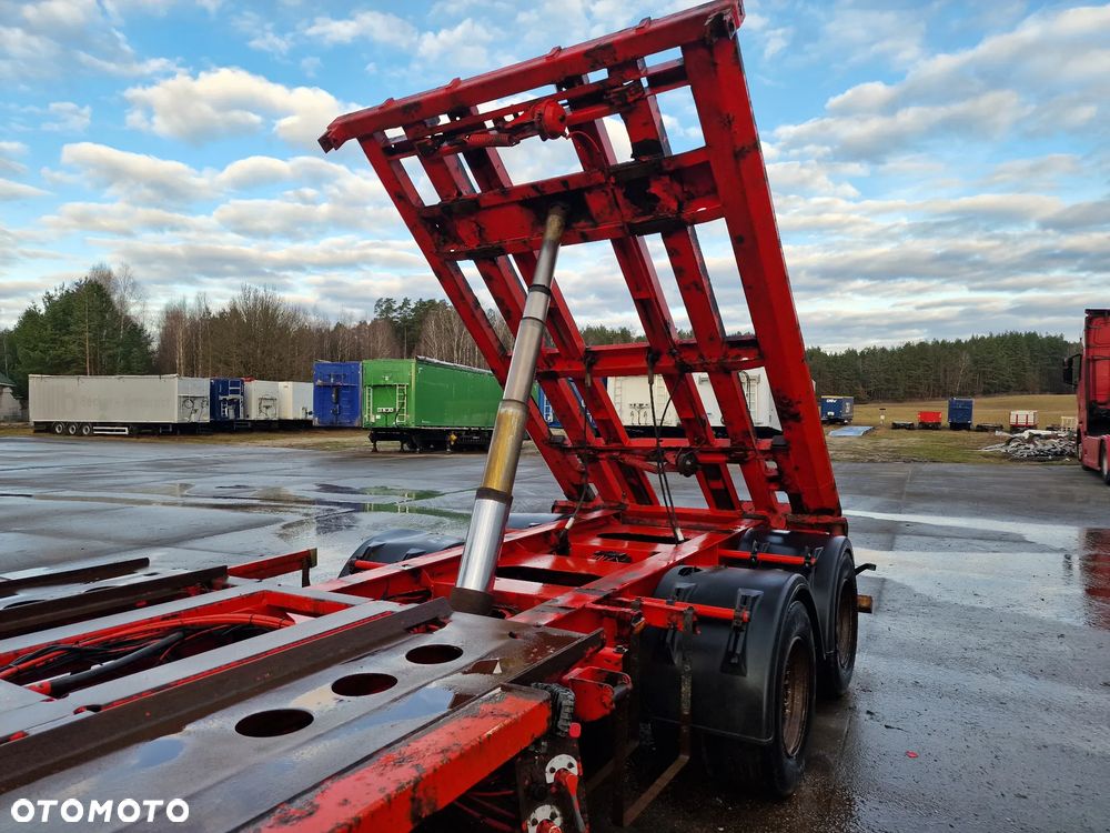 KEL-BERG przyczepa hakowiec z wywrotem do przewozu kontenerów; rok produkcji 2005; 3 osie BPW; hamulce bębnowe; ABS; pneumatyczne zawieszenie; DMC: 24000 kg; ładowność: 18000 kg; długość 6,50 m; rozmiar opon: 265/70r19,5;