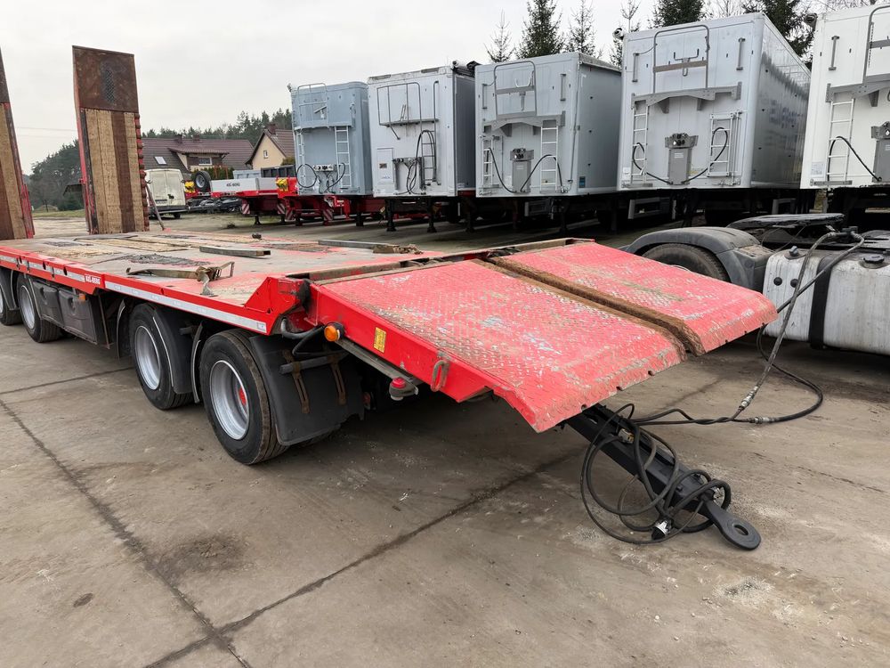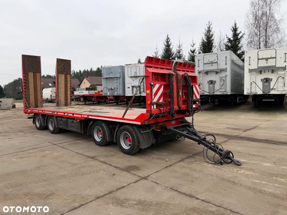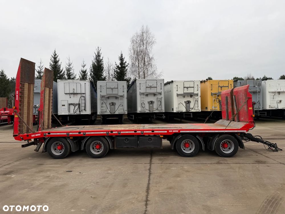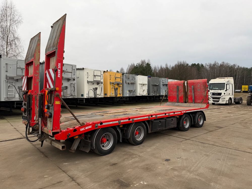 KEL-BERG przyczepa niskopodwoziowa 4-osiowa 2012 rok; ABS; pneumatyczne zawieszenie; 4 osie BPW; hamulce bębnowe; najazdy hydrauliczne tył + dodatkowe z przodu do przejazdu; długość powierzchni ładunkowej: 8,05 m; DMC konstrukcyjne: 40000 kg; DMC administracyjne w Polsce: 24000 kg;