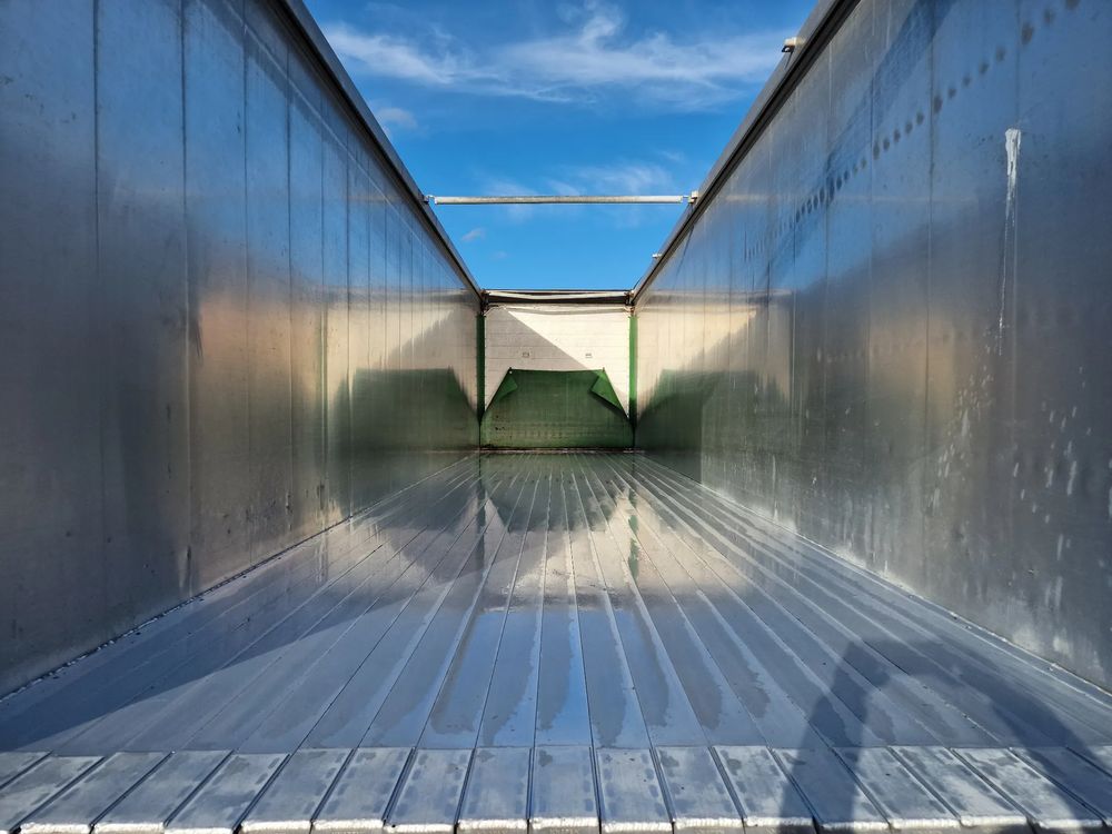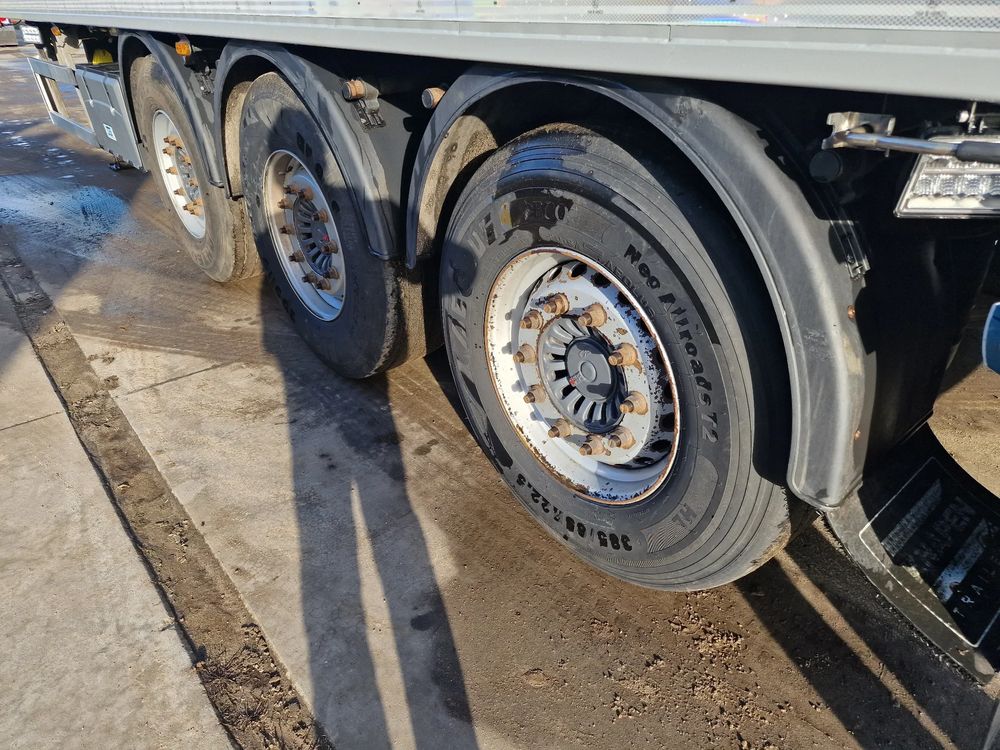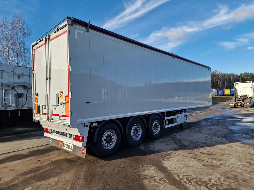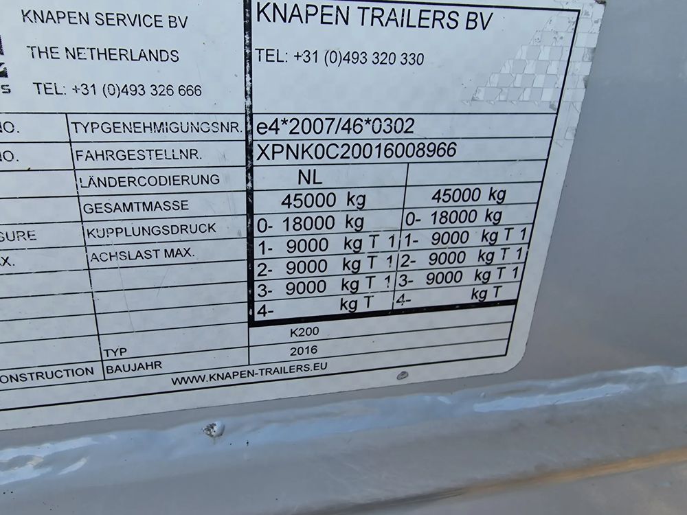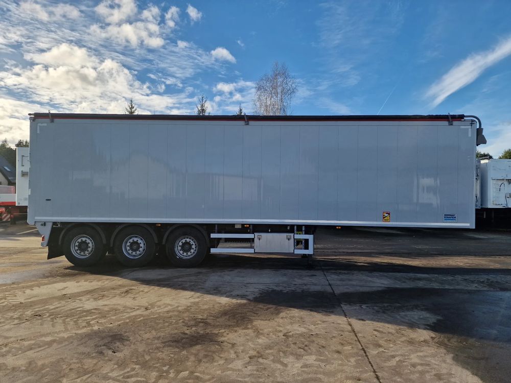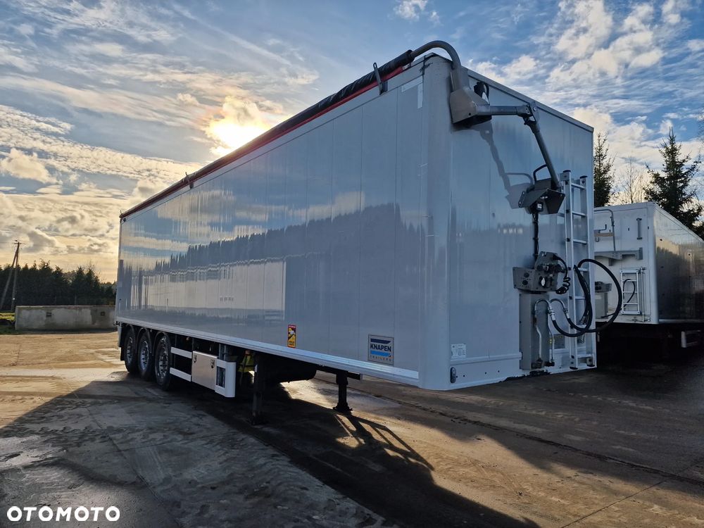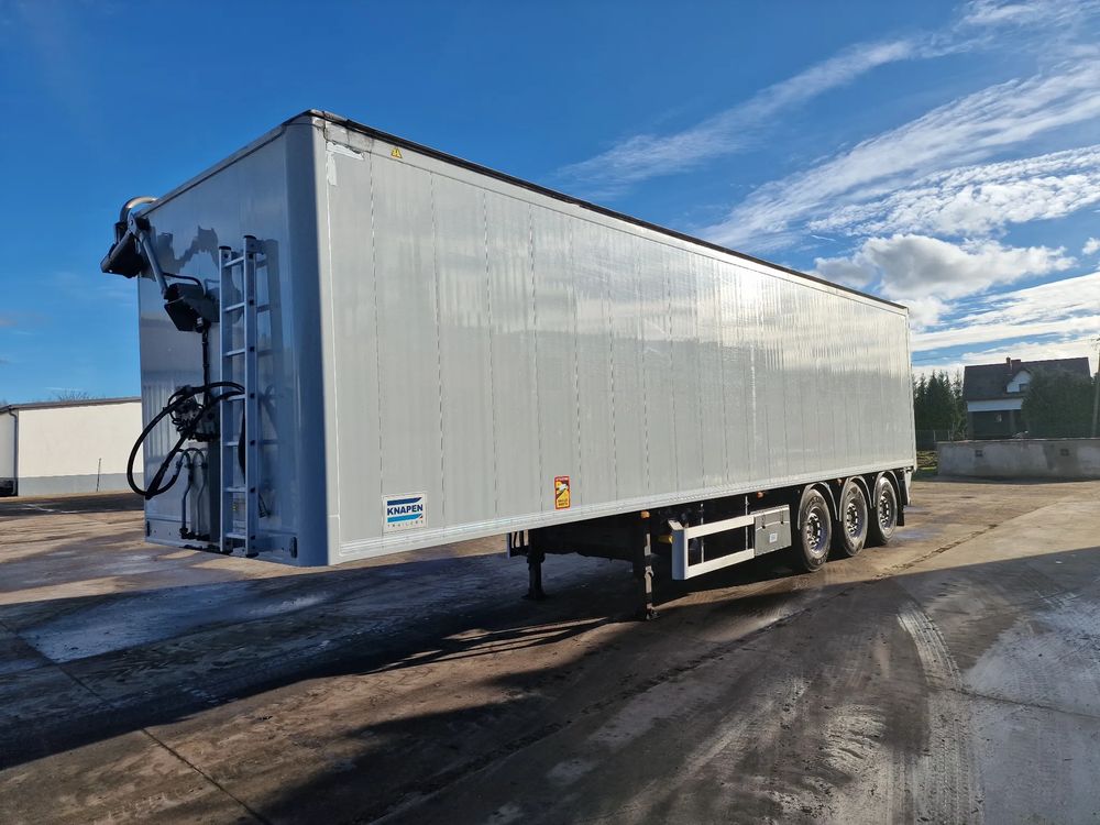 KNAPEN K200 Ruchoma podłoga w wersji AGRO 68m3; rok produkcji: 2016; 3 osie SAF; hamulce tarczowe; ostatnia oś podnoszona; podłoga Cargo Floor o grubości 6 mm w stanie bardzo dobrym (do naczepy założona kompletnie nowa podłoga w 06/2022); wymiary skrzyni ładunkowej: 11,00 m x 2,48 m x 2,50 m; pilot bezprzewodowy KNAPEN; elektryczna plandeka dachowa POWER SHEET;