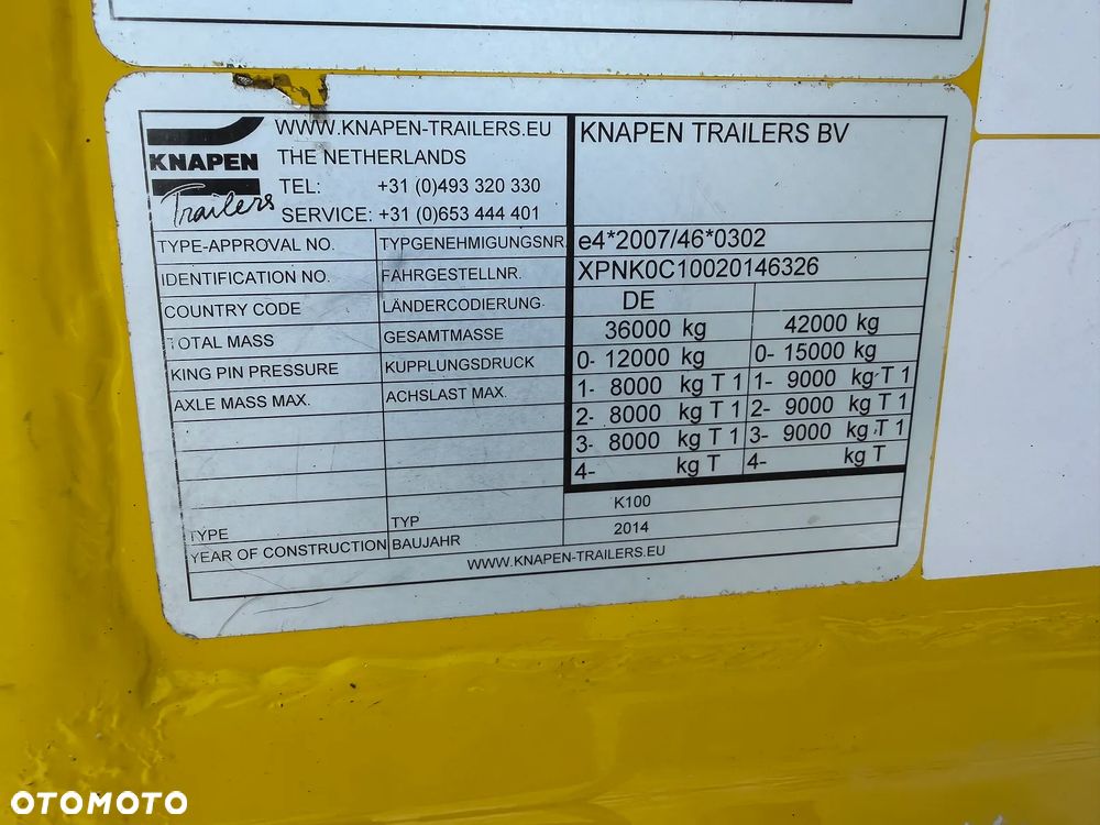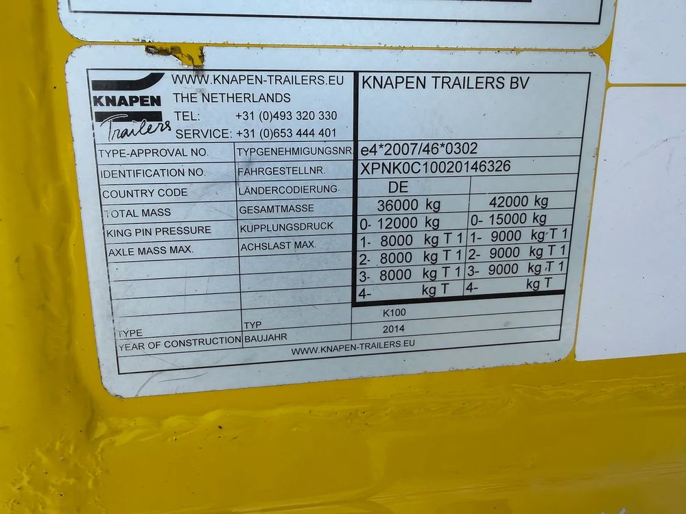 KNAPEN Ruchoma podłoga 92m3 2014 rok; 3 osie Mercedes; hamulce tarczowe; pierwsza oś podnoszona; podłoga Cargo Floor o grubości 10 mm w stanie bardzo dobrym; pilot bezprzewodowy;