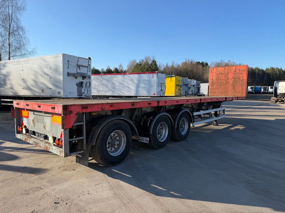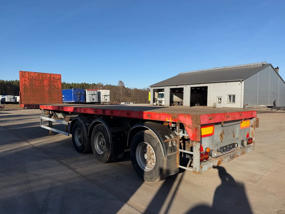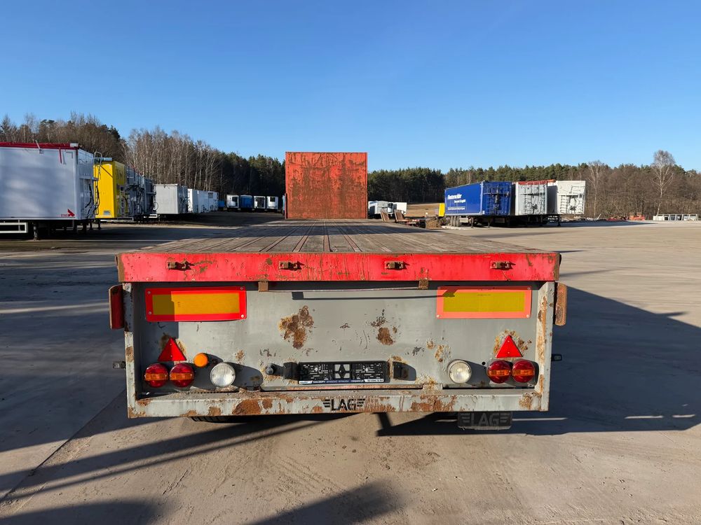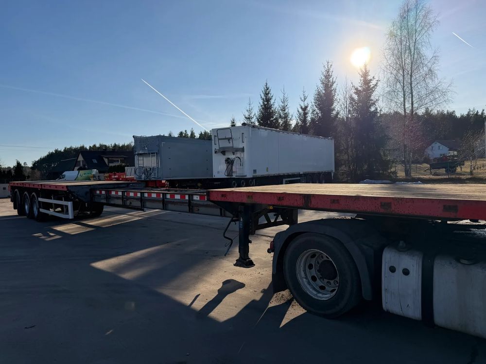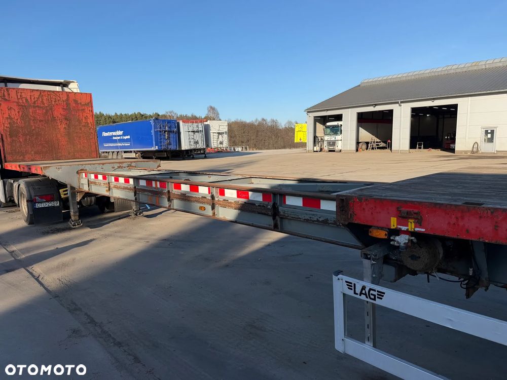 LAG platforma rozciągana 2005 rok; długość 12,20m + 6,50 m; 3 osie BPW; hamulce bębnowe; ostatnia oś skrętna;
