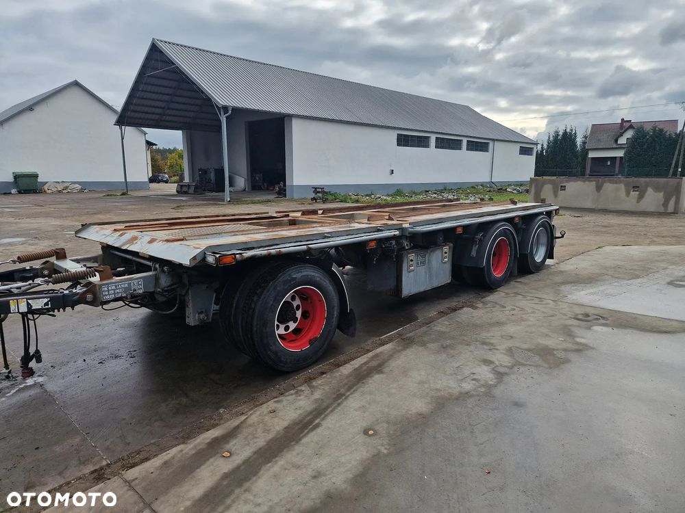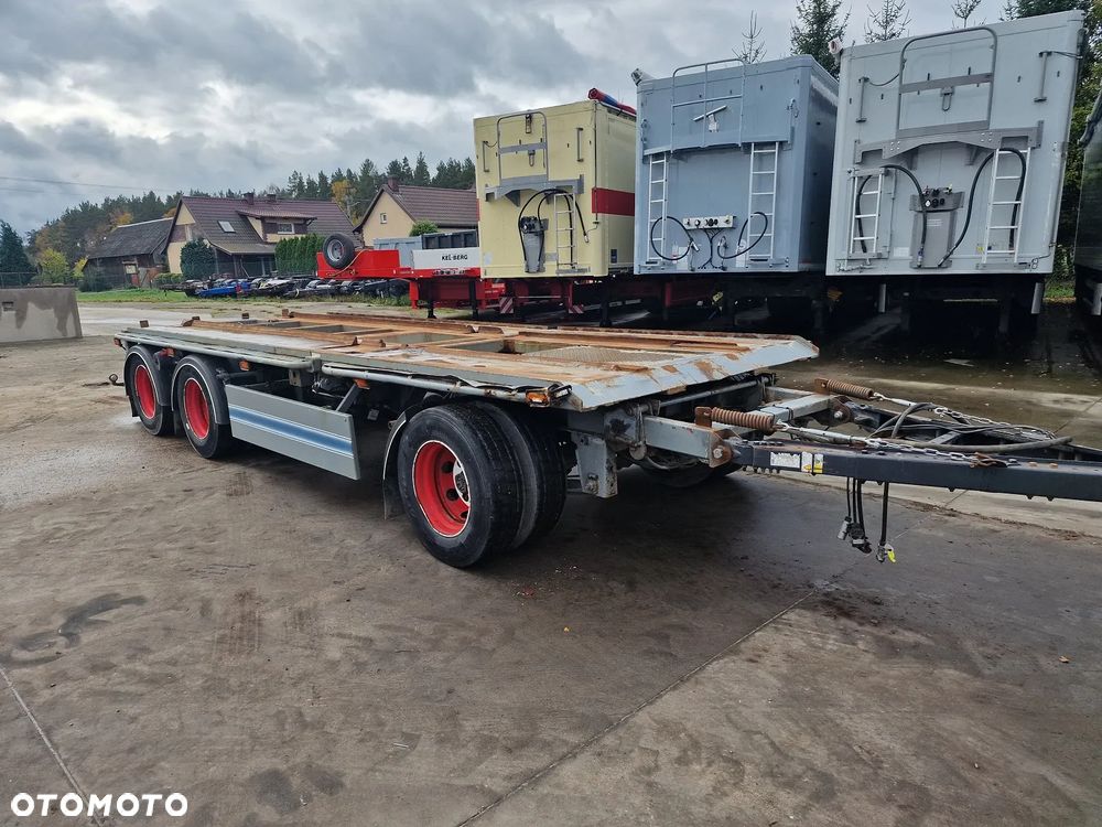 DAPA przyczepa hakowiec z wywrotem do przewozu kontenerów; rok produkcji 2006; 3 osie BPW; hamulce bębnowe; ABS; pneumatyczne zawieszenie; DMC: 24000 kg; ładowność: 18480 kg; rozmiar opon: 265/70R19,5;