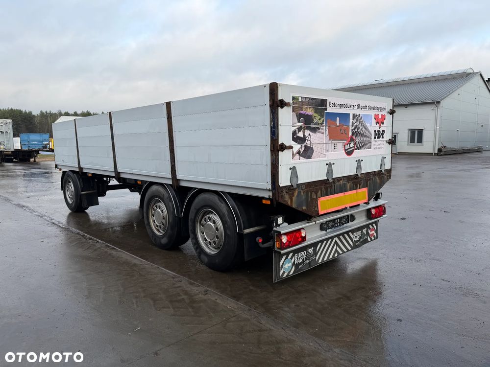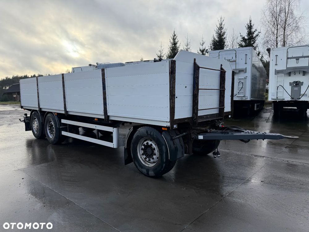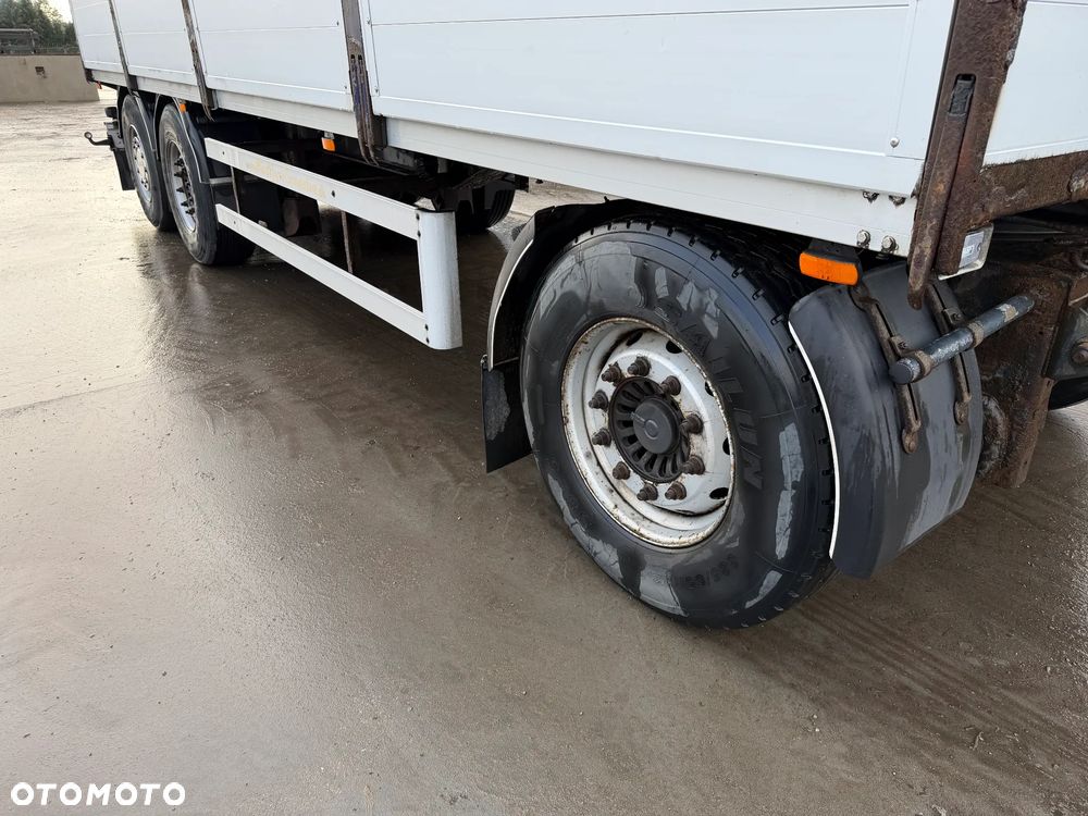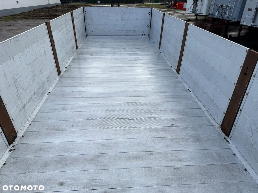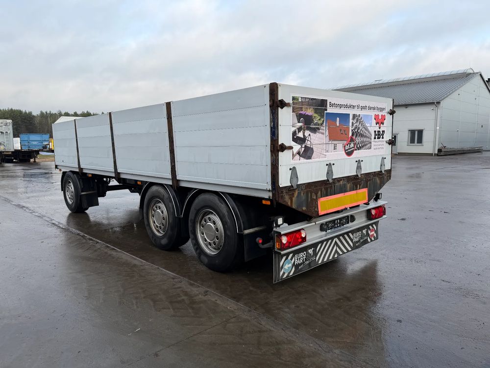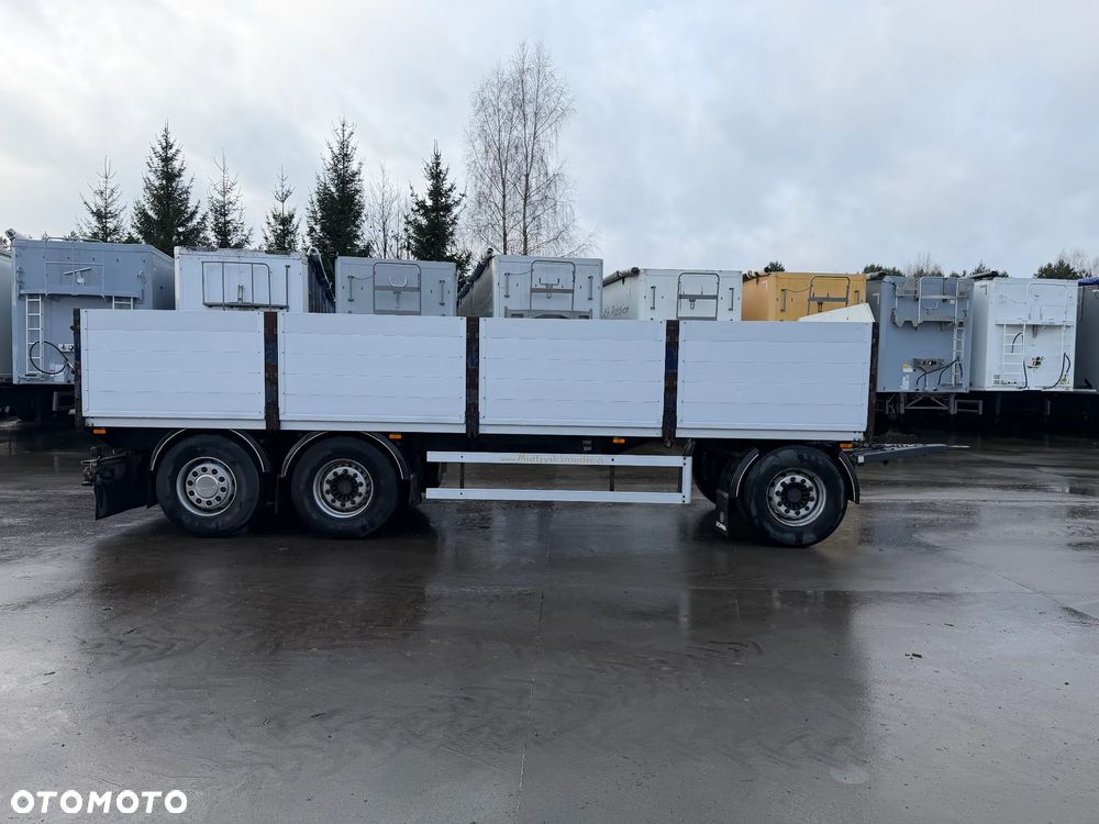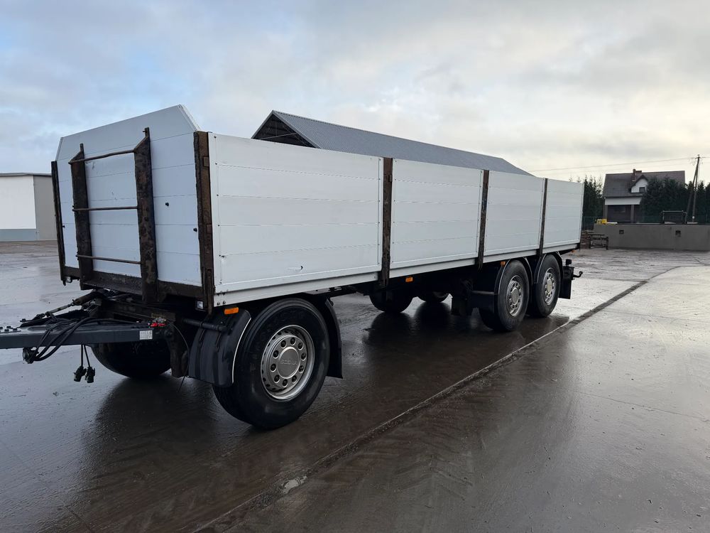 MJS przyczepa burtowa, budowlana 2008 rok; ABS; pneumatyczne zawieszenie; 3 osie SAF; hamulce tarczowe; 1 oś podnoszona; burty oraz podłoga aluminiowe; wymiary skrzyni ładunkowej: 7,70 m x 2,47 m x 1,00 m; DMC: 24000 kg; masa własna: 4500 kg; ładowność: 19500 kg;