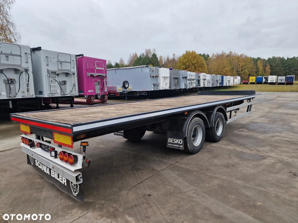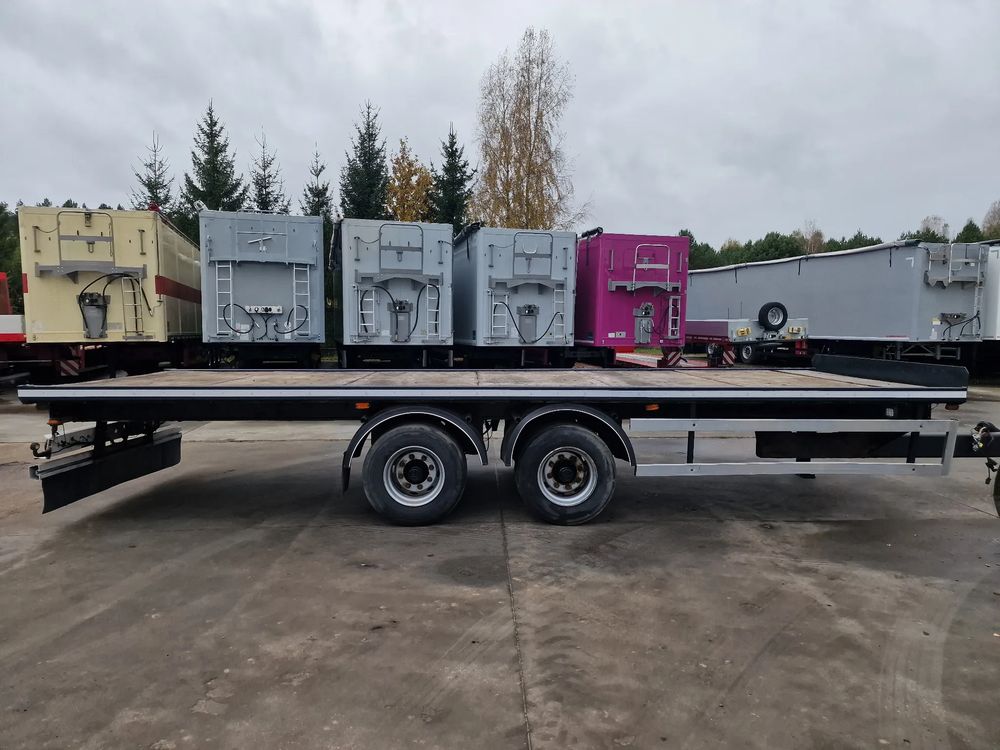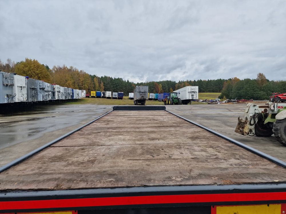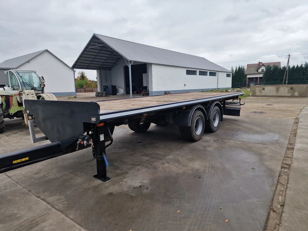 NOPA przyczepa platforma TANDEM 2001 rok; ABS; pneumatyczne zawieszenie; hamulce bębnowe; rozmiar opon: 445/45R19,5; DMC: 18000 kg; masa własna: 4000 kg; ładowność: 14000 kg; wymiary platformy: 7,85 m x 2,55 m;