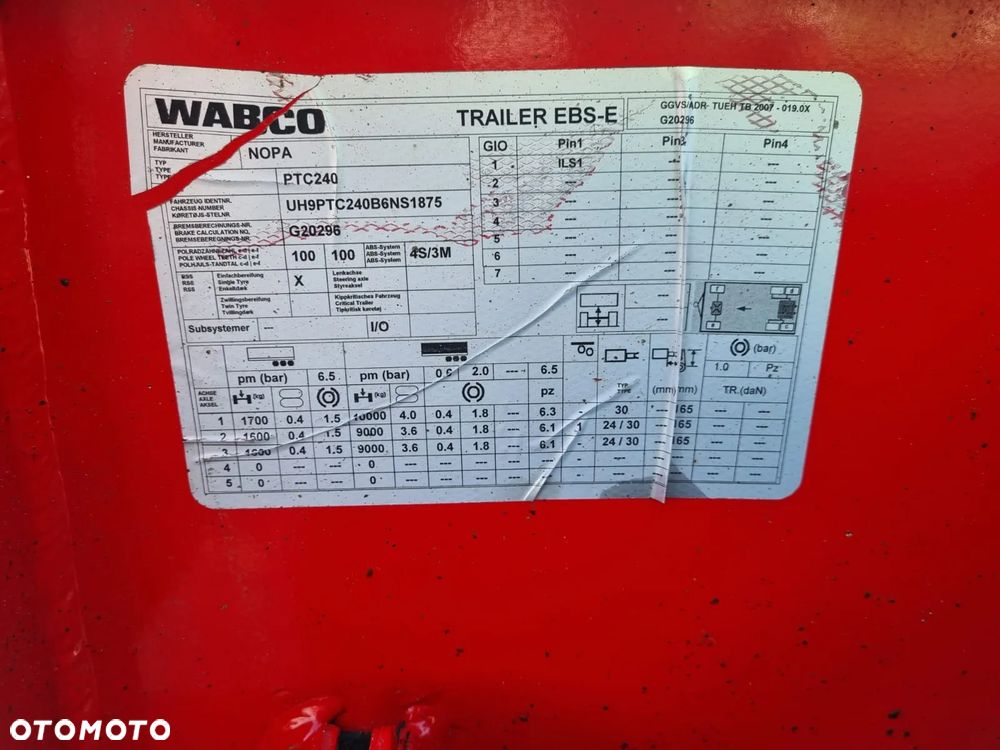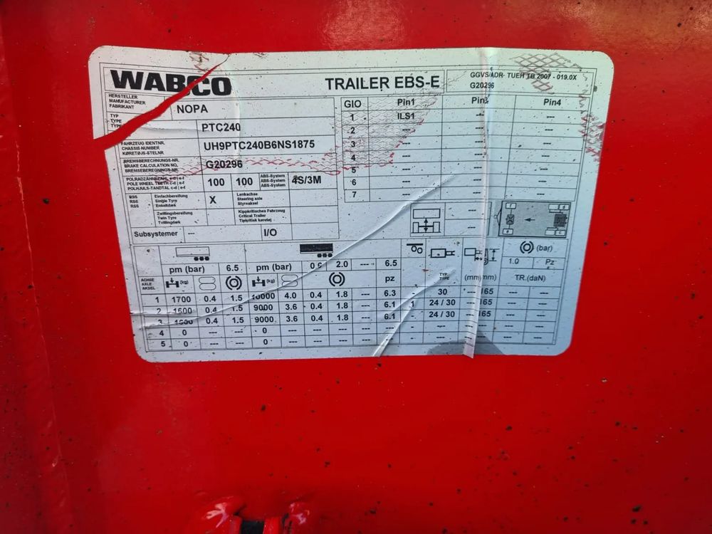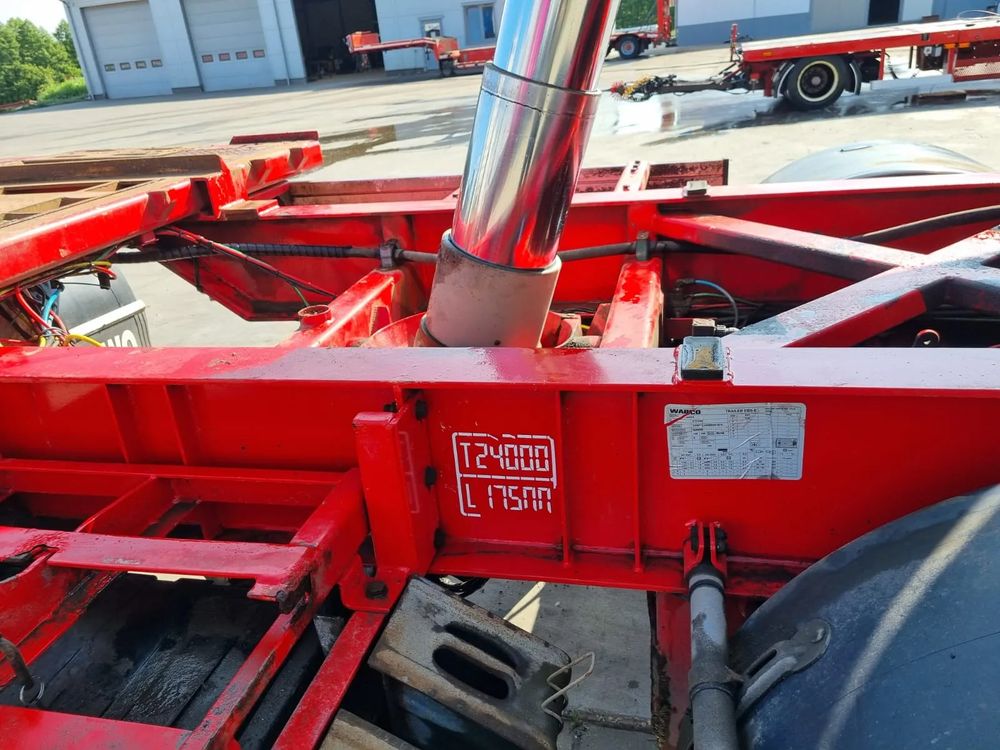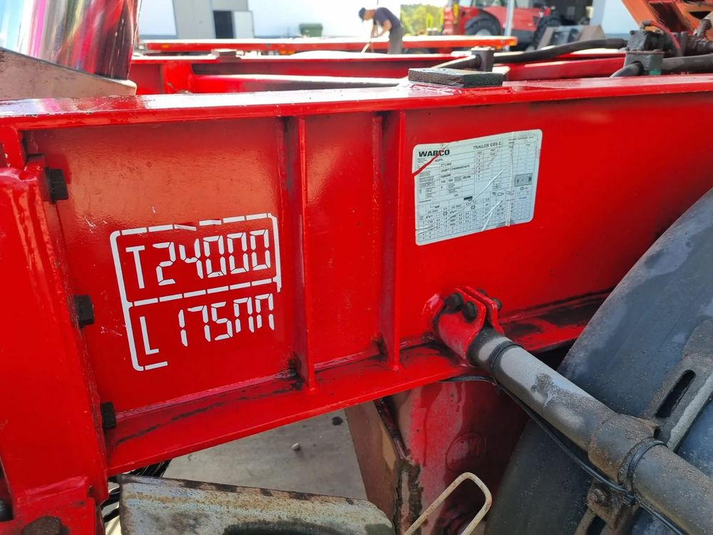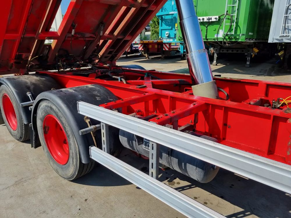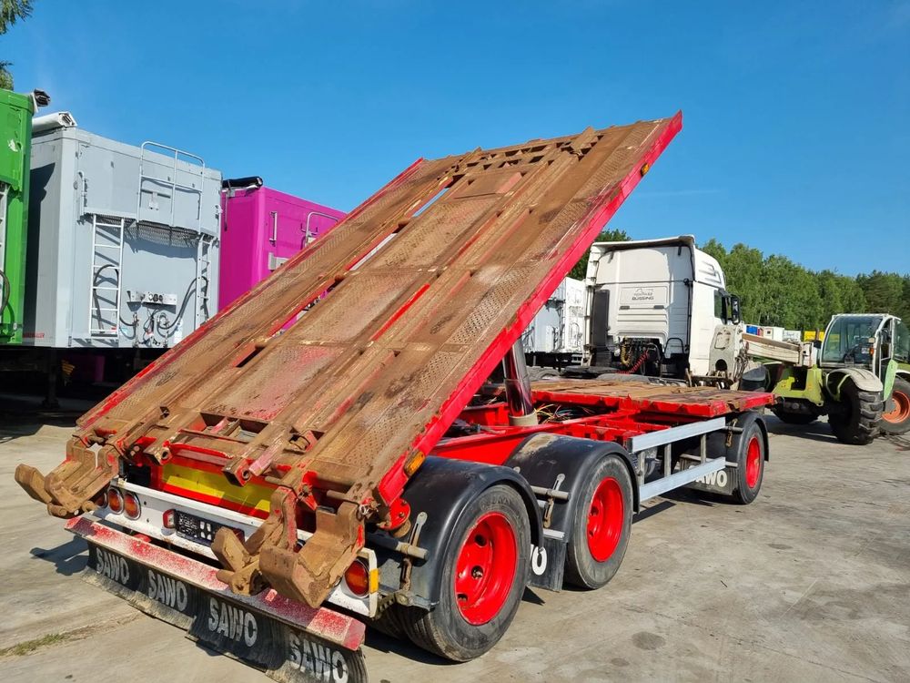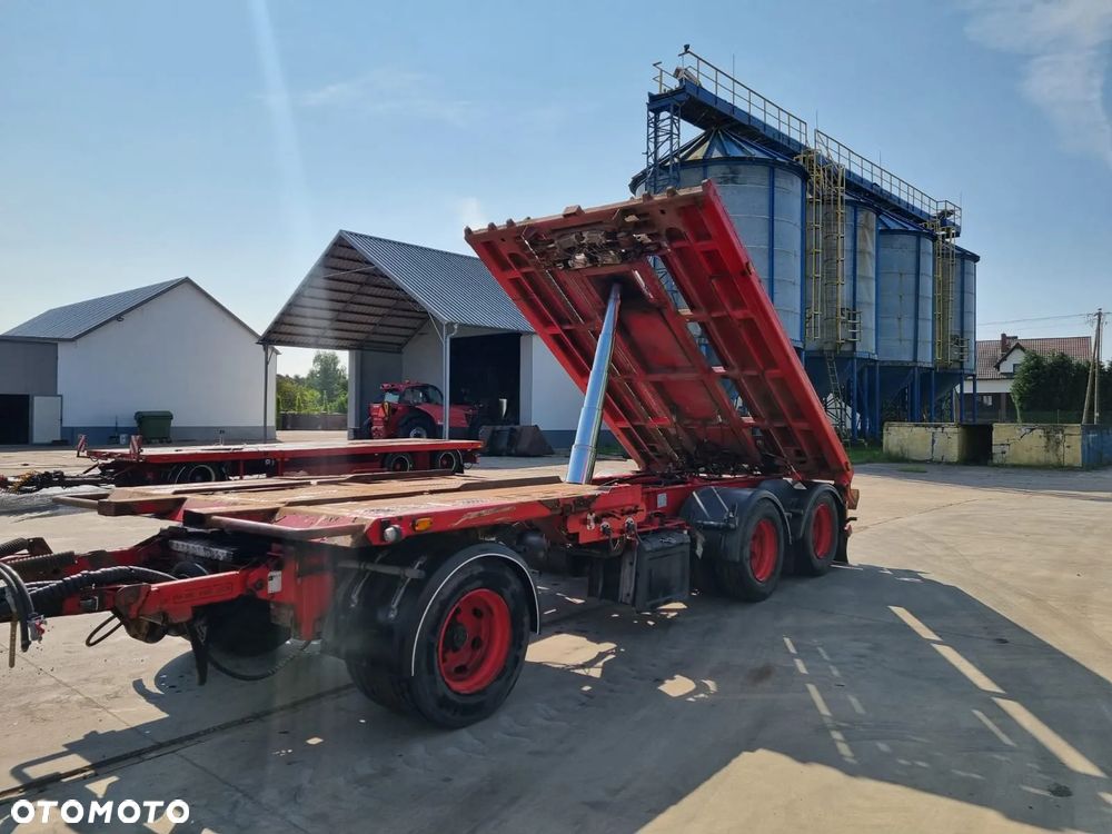 NOPA przyczepa hakowiec z wywrotem do przewozu kontenerów; rok produkcji 2015; 3 osie BPW; hamulce bębnowe; ABS; pneumatyczne zawieszenie; oś podnoszona; DMC: 24000 kg; długość 6,50 m-7,00 m; rozmiar opon: 265/70r19,5;