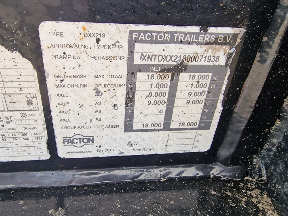 PACTON wózek DOLLY 2013 rok; ABS; EBS; pneumatyczne zawieszenie; 2 osie SAF; hamulce tarczowe; rozmiar opon: 385/55R22,5;