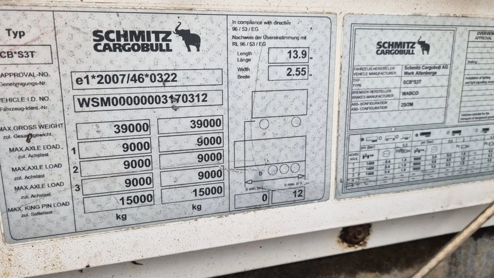 SCHMITZ Burto-Firanka Standard 12/2012 rok; 3 osie BPW; hamulce bębnowe; opony – 80% do jazdy; burty aluminiowe;