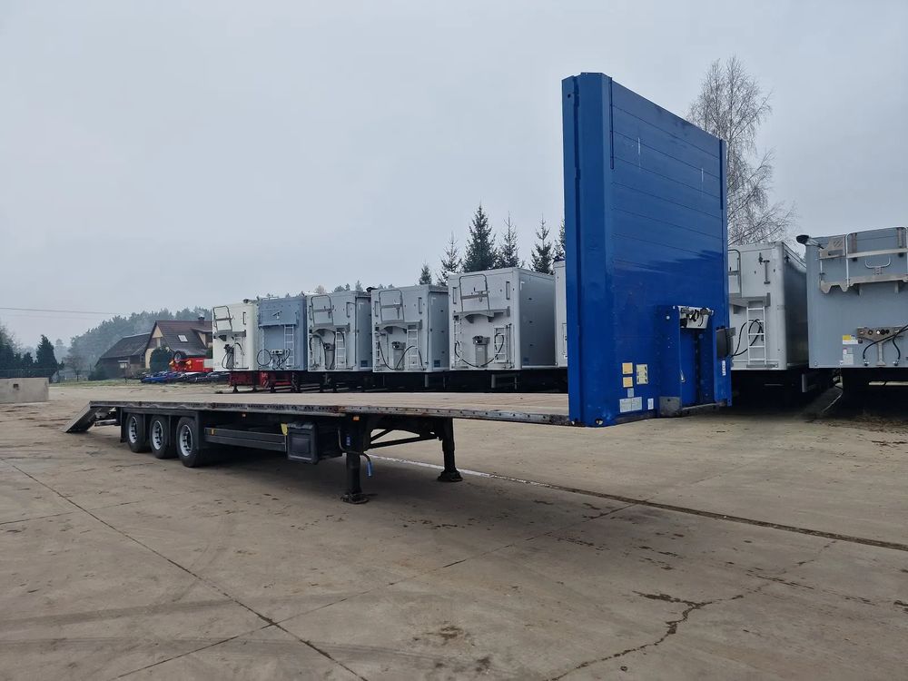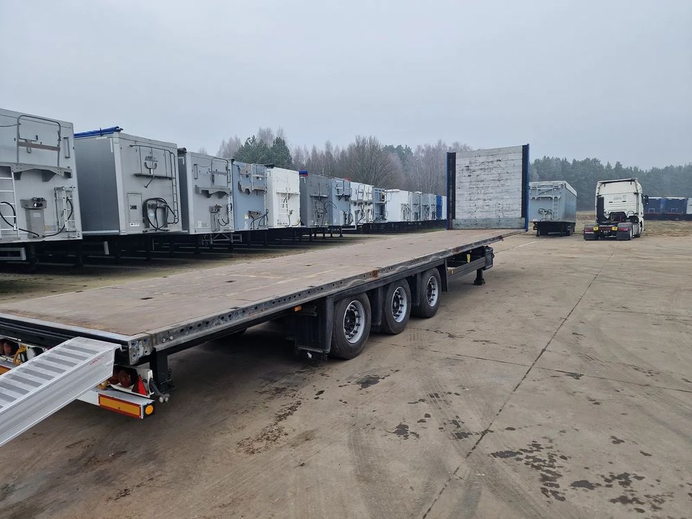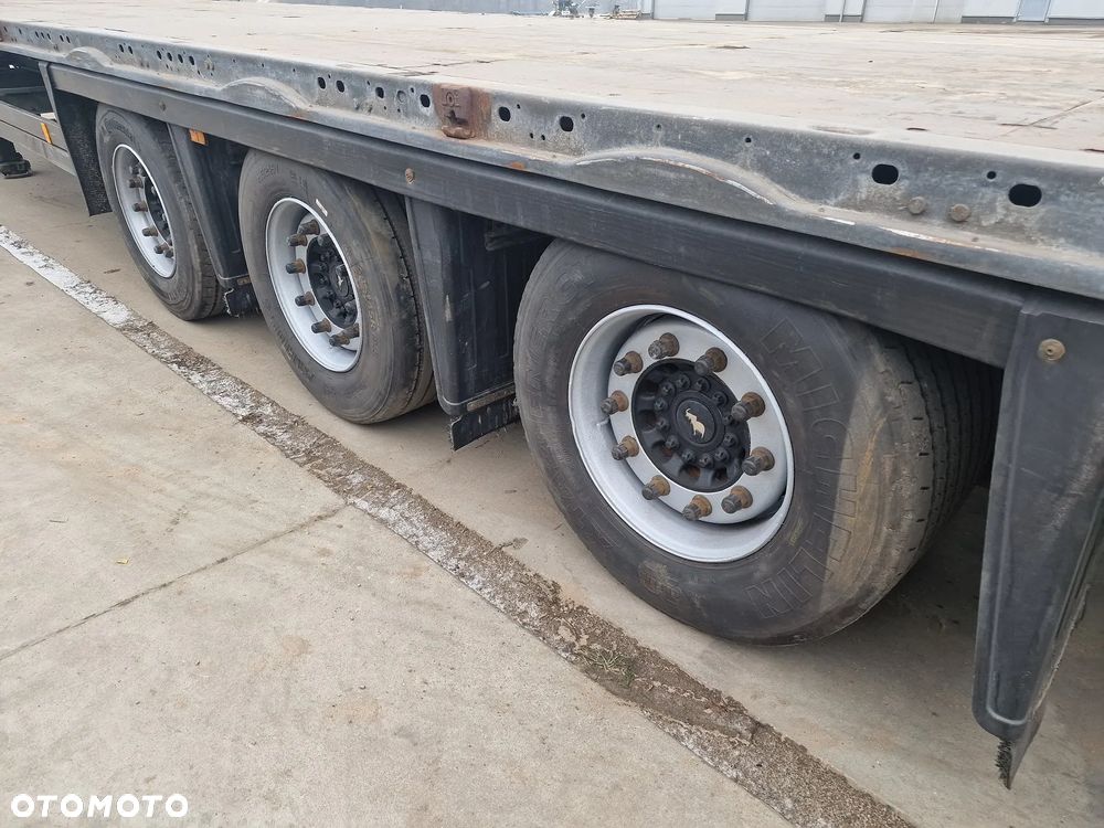 SCHMITZ platforma 2014 rok; 3 osie SCHMITZ; hamulce tarczowe; rozmiar opon: 445/45R19,5; NOWE najazdy aluminiowe o długości 3,00 m; dodatkowe stopy podporowe; rama ocynk;