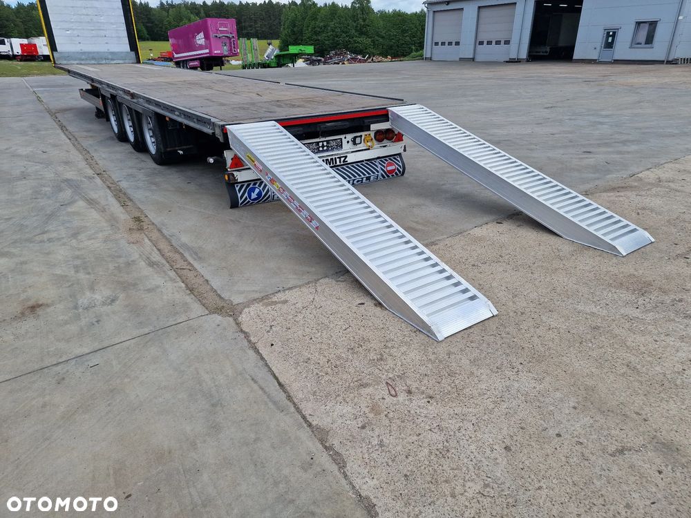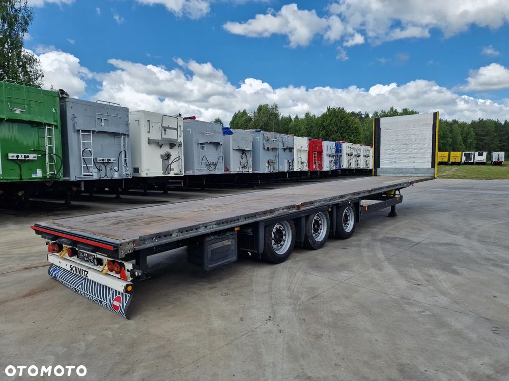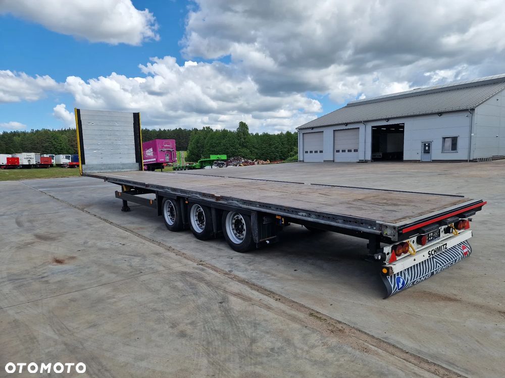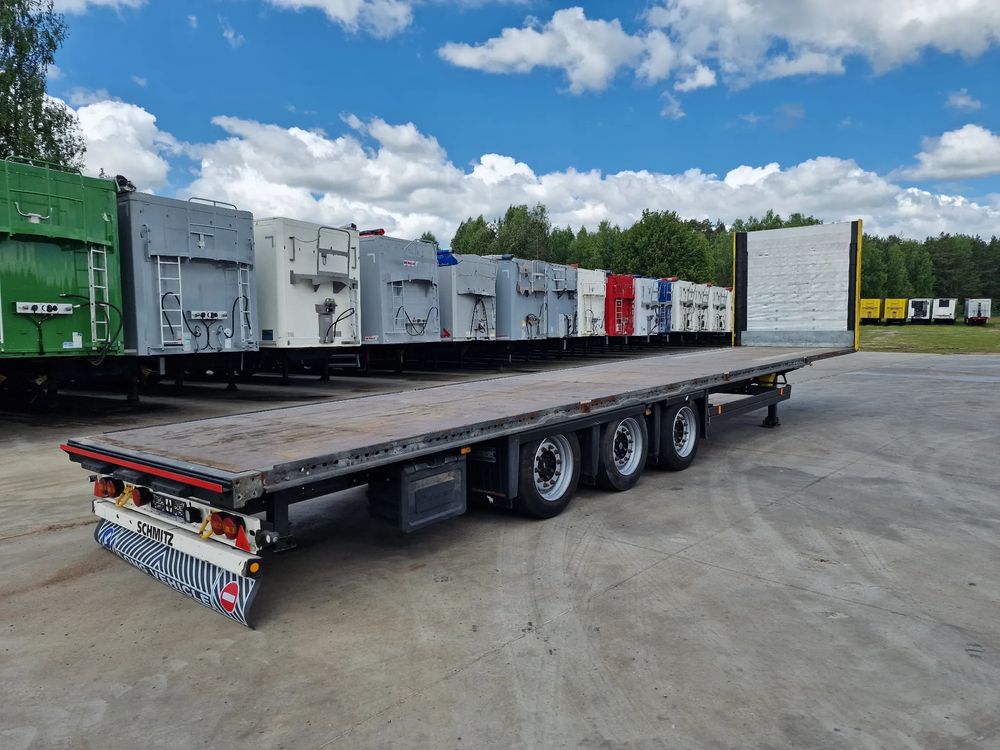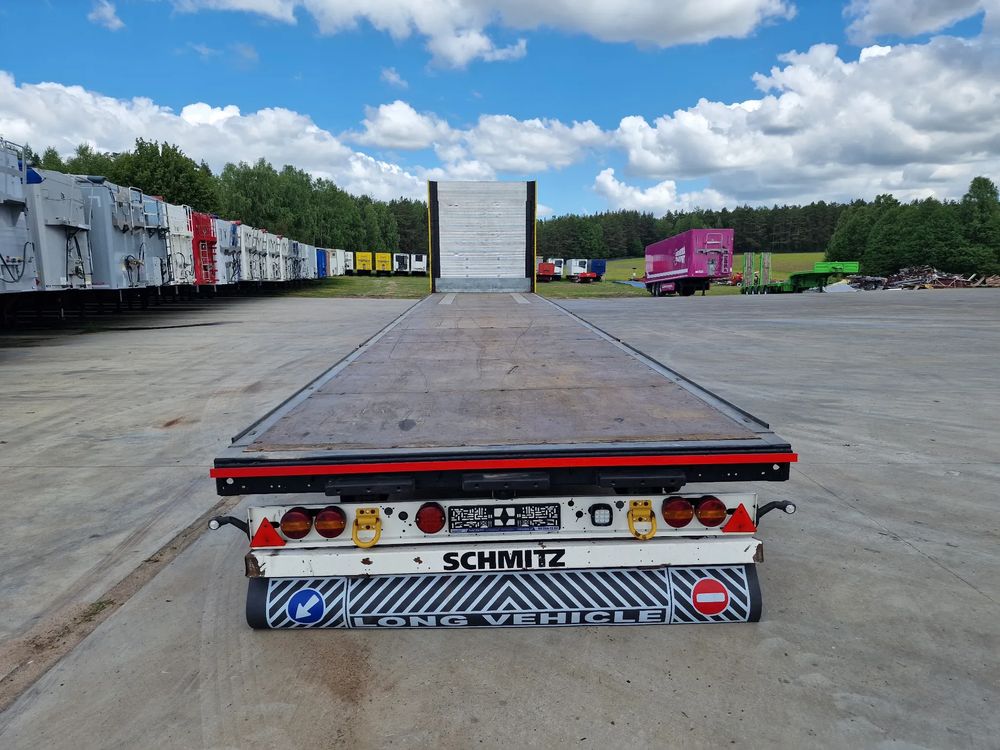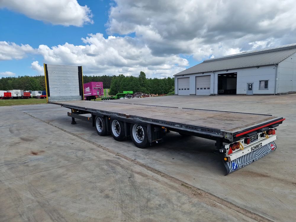 SCHMITZ platforma 2015 rok; 3 osie SCHMITZ; hamulce tarczowe; rozmiar opon: 455/40R22,5; NOWE najazdy aluminiowe o długości 3,00 m; dodatkowe stopy podporowe; rama ocynk;