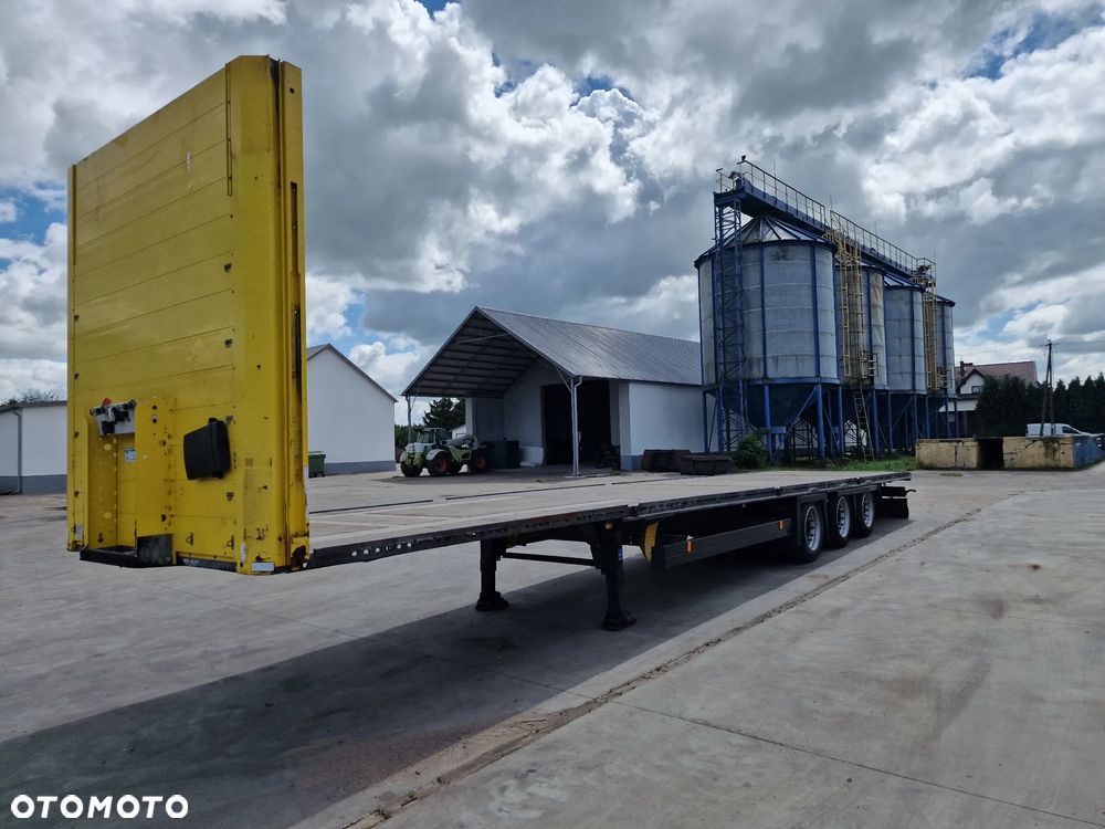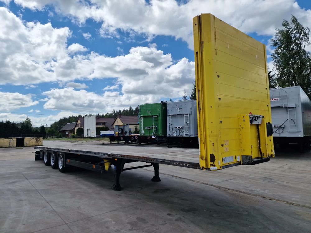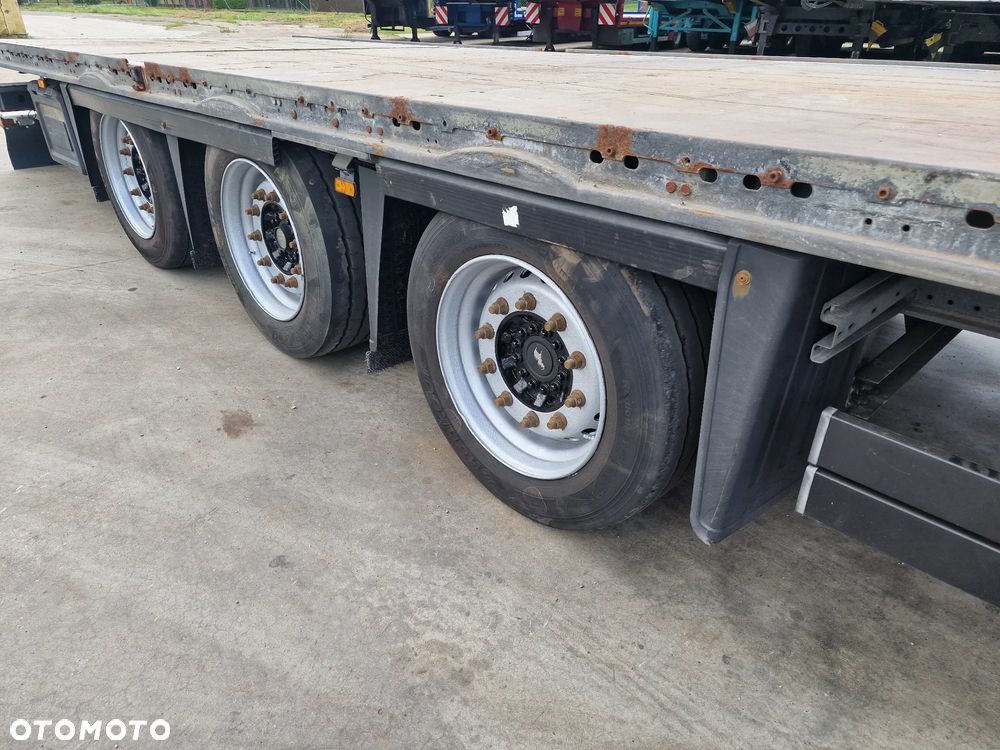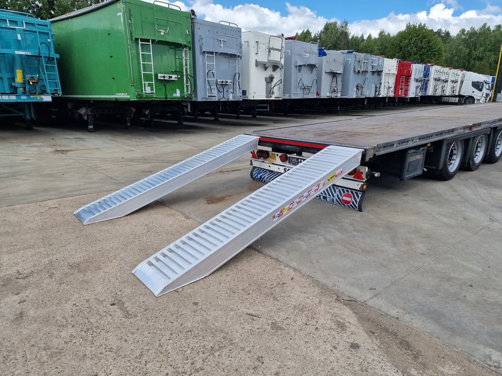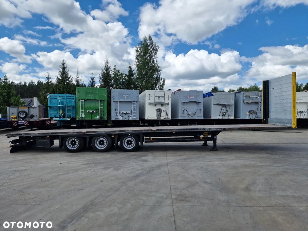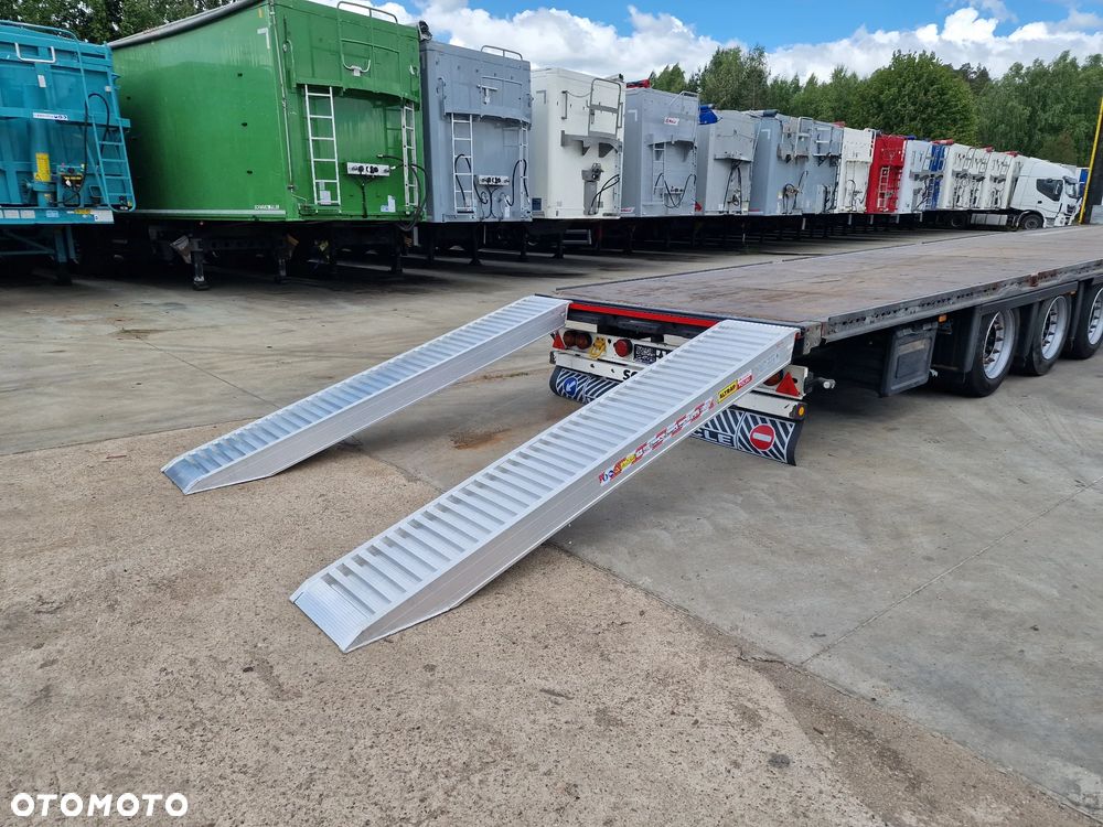 SCHMITZ platforma 2015 rok; 3 osie SCHMITZ; hamulce tarczowe; rozmiar opon: 455/40R22,5; NOWE najazdy aluminiowe o długości 3,00 m; dodatkowe stopy podporowe; rama ocynk;