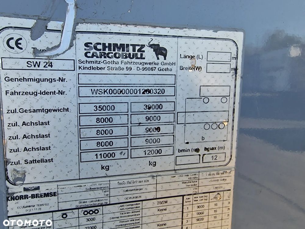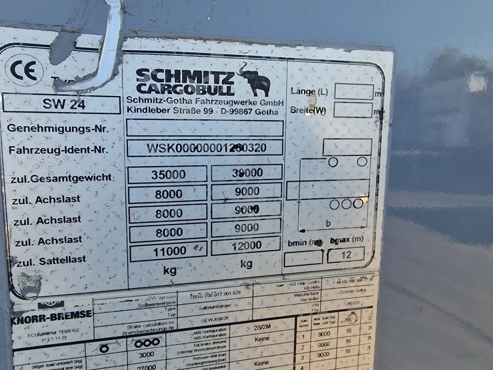 SCHMITZ Ruchoma podłoga 2011 rok z OTWIERANYM BOKIEM; 3 osie Schmitz; hamulce tarczowe; podłoga Cargo Floor o grubości 6 mm; masa własna: 8800 kg;
