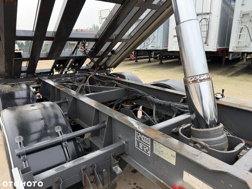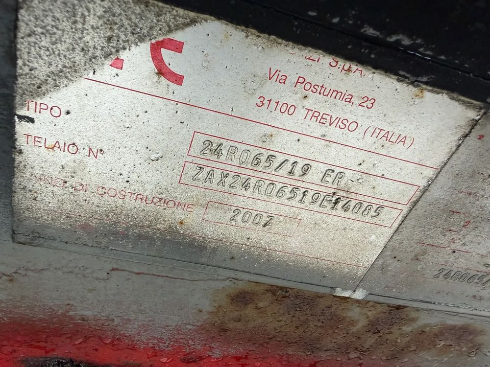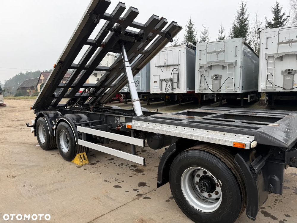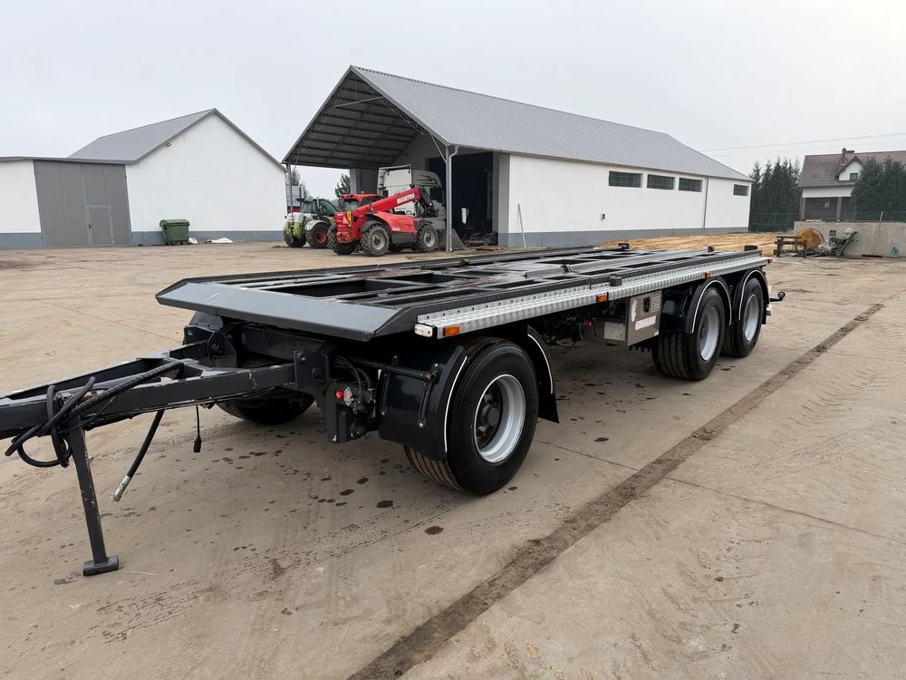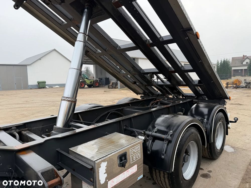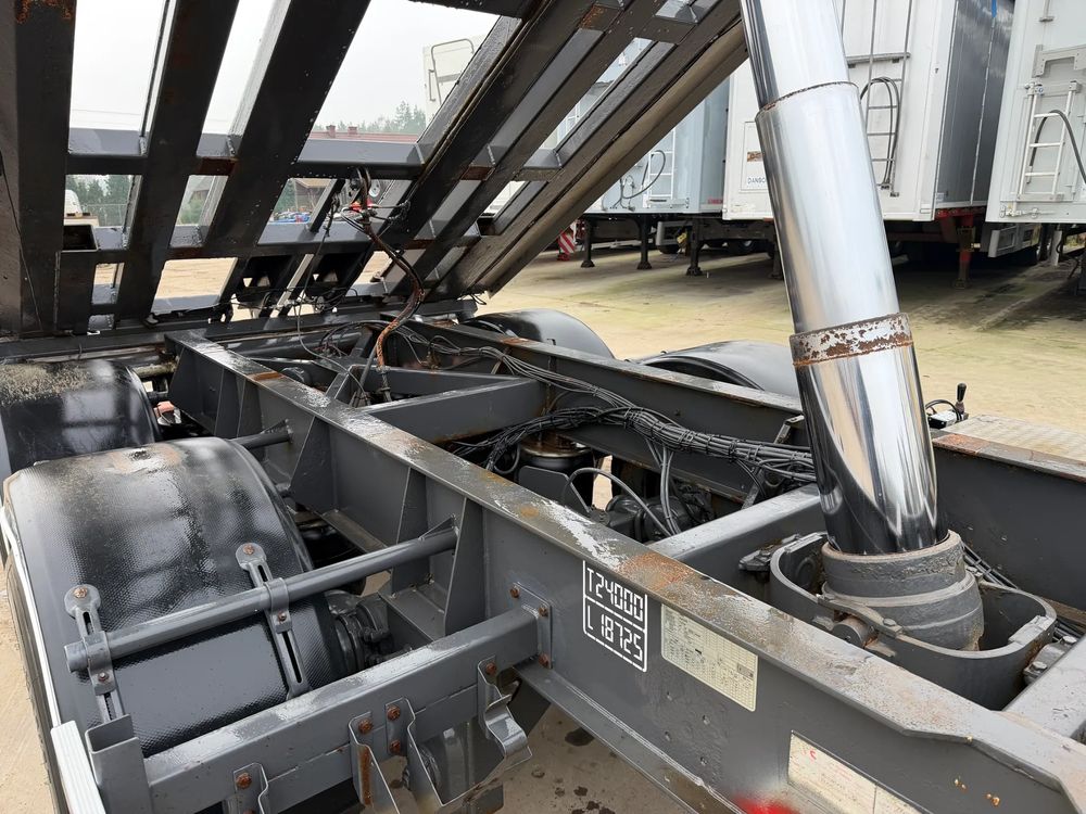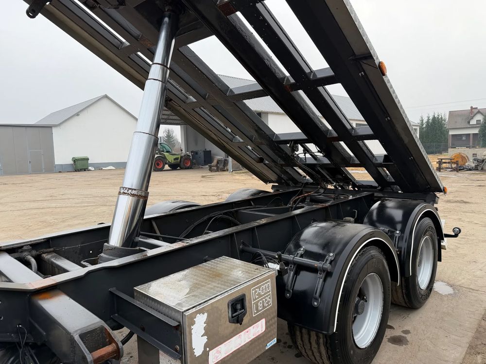 ZORZI przyczepa hakowiec z wywrotem do przewozu kontenerów; rok produkcji 2007; I rejestracja 01/2008; 3 osie BPW; hamulce tarczowe; ABS; pneumatyczne zawieszenie; oś podnoszona; DMC: 24000 kg; długość 6,50 m-7,00 m; rozmiar opon: 435/50r19,5;