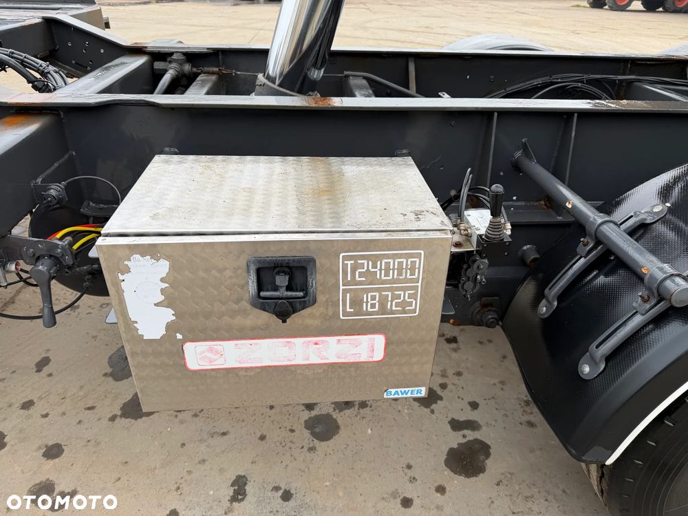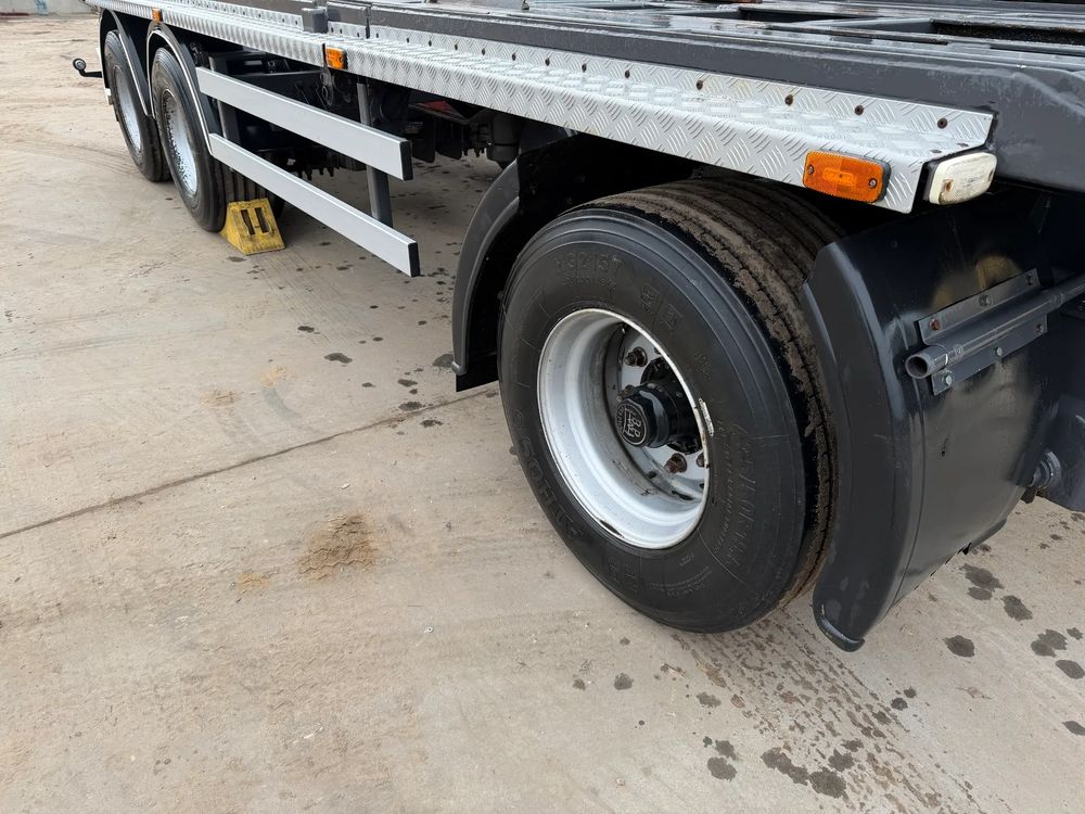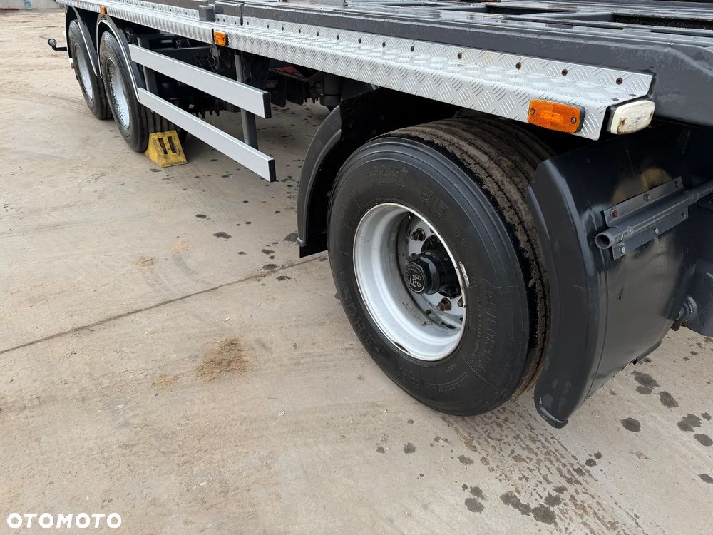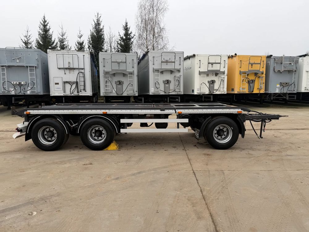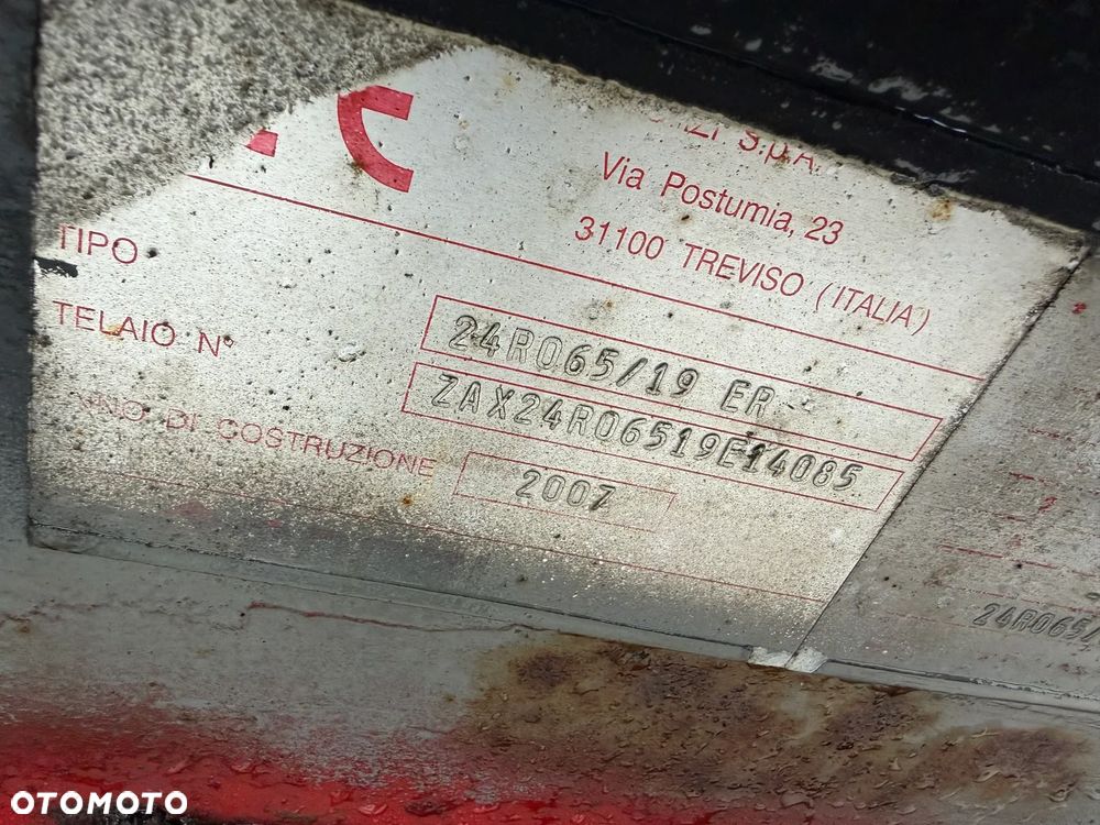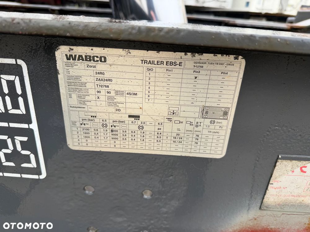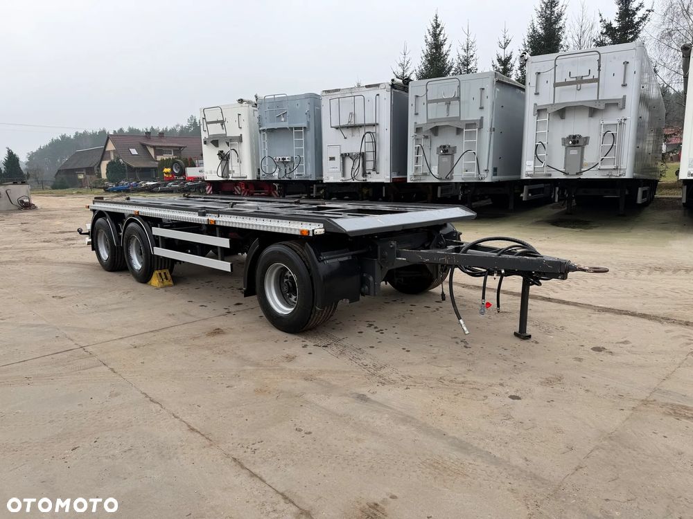 ZORZI przyczepa hakowiec z wywrotem do przewozu kontenerów; rok produkcji 2007; I rejestracja 01/2008; 3 osie BPW; hamulce tarczowe; ABS; pneumatyczne zawieszenie; oś podnoszona; DMC: 24000 kg; długość 6,50 m-7,00 m; rozmiar opon: 435/50r19,5;